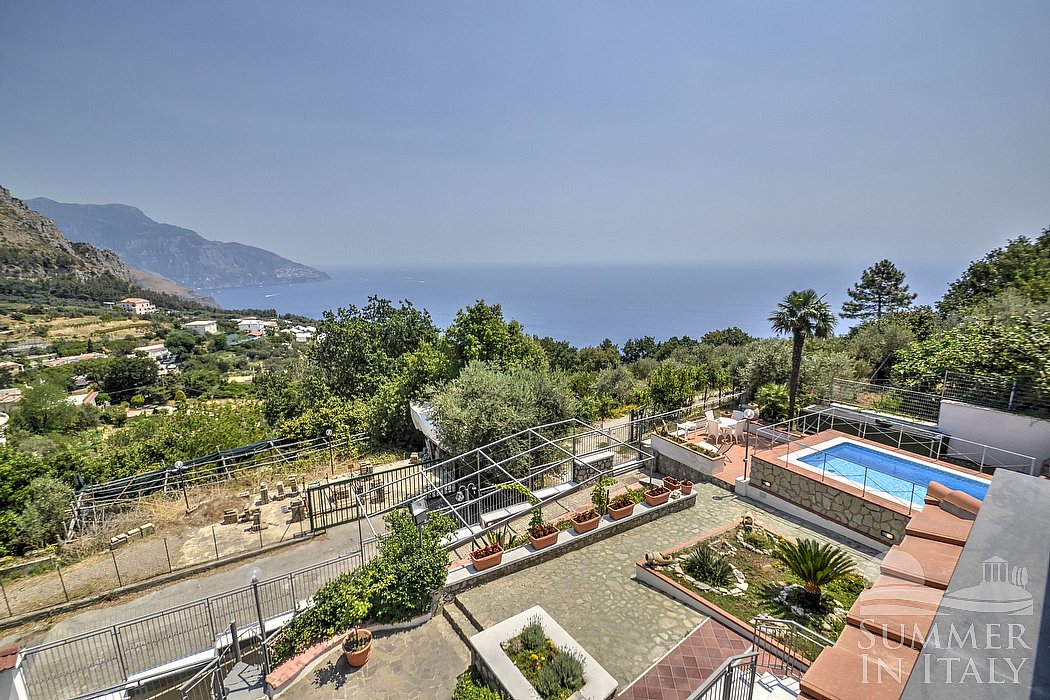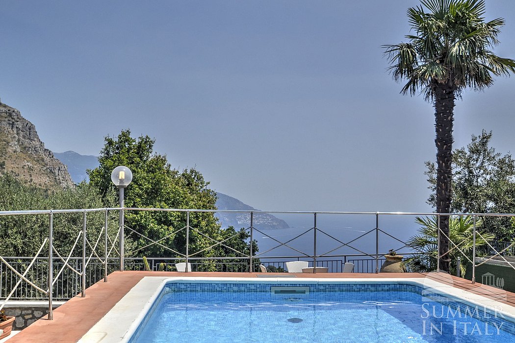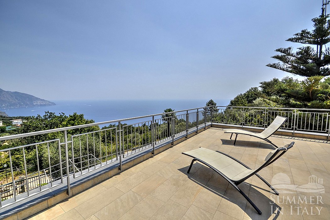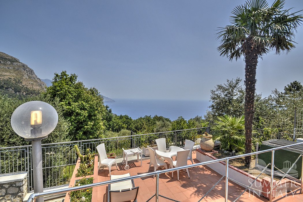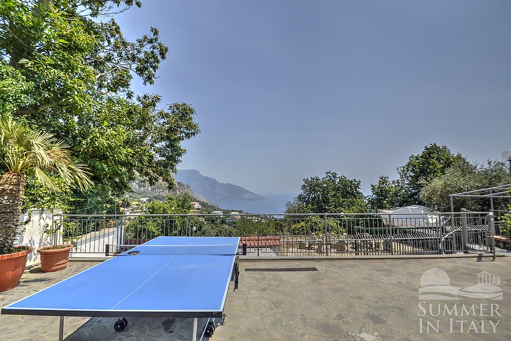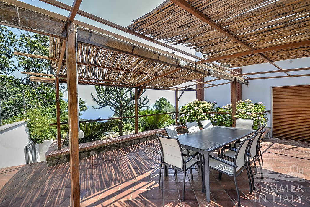 Villa Paola is a bright and sunny two-story villa which faces the sun and the sea. It sleeps 12 people. From Villa Paola you will enjoy a marvelous view of the sea and of the coast of Amalfi. Villa Paola is 220 square meters (2370 square feet). It features a private swimming pool, a panoramic private terrace with a view of the sea and of the coastline, two private patios, air conditioning (please read description below to check in which rooms the units are installed), winter heating and WI-FI Internet access.