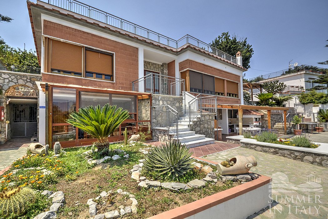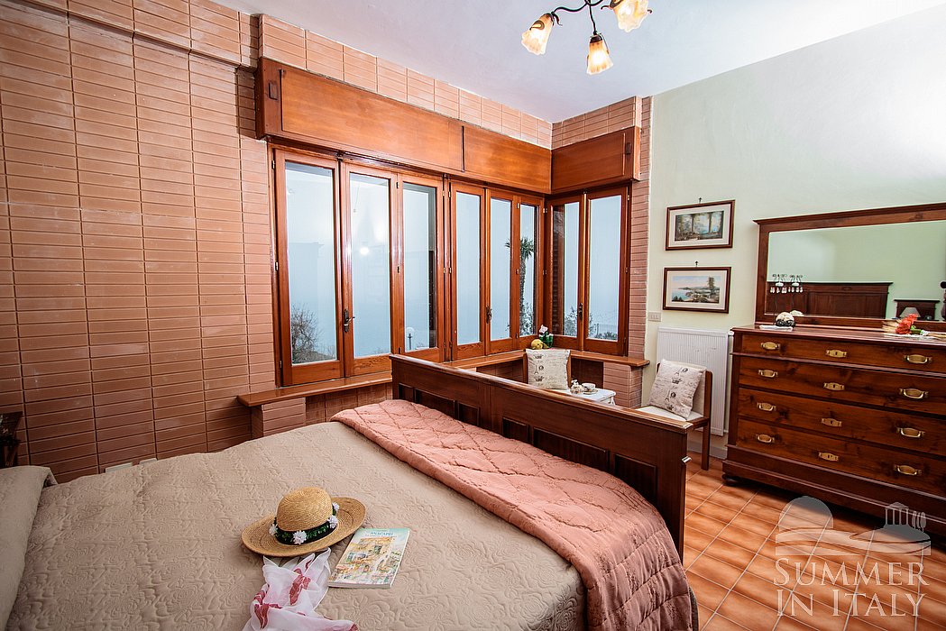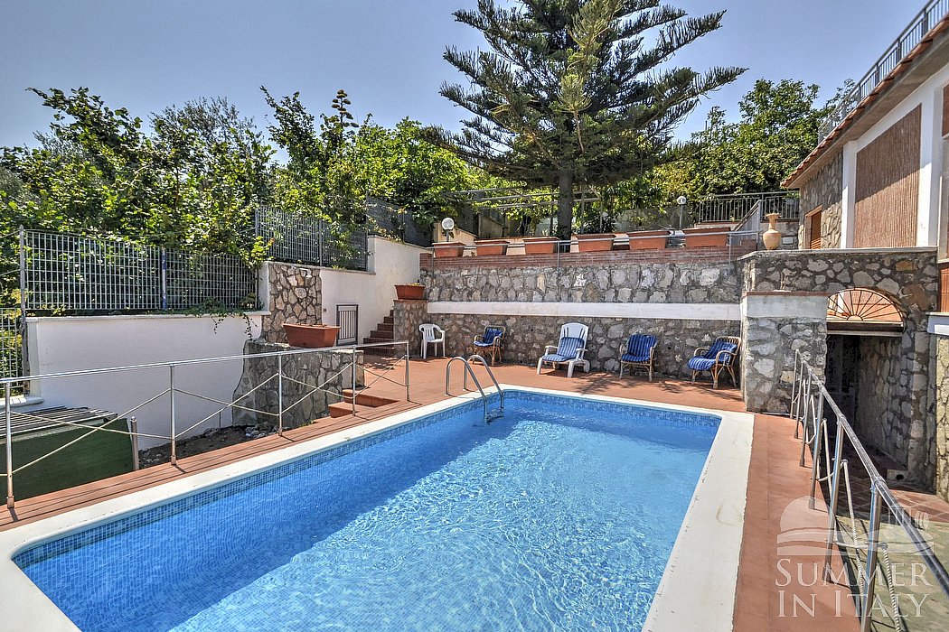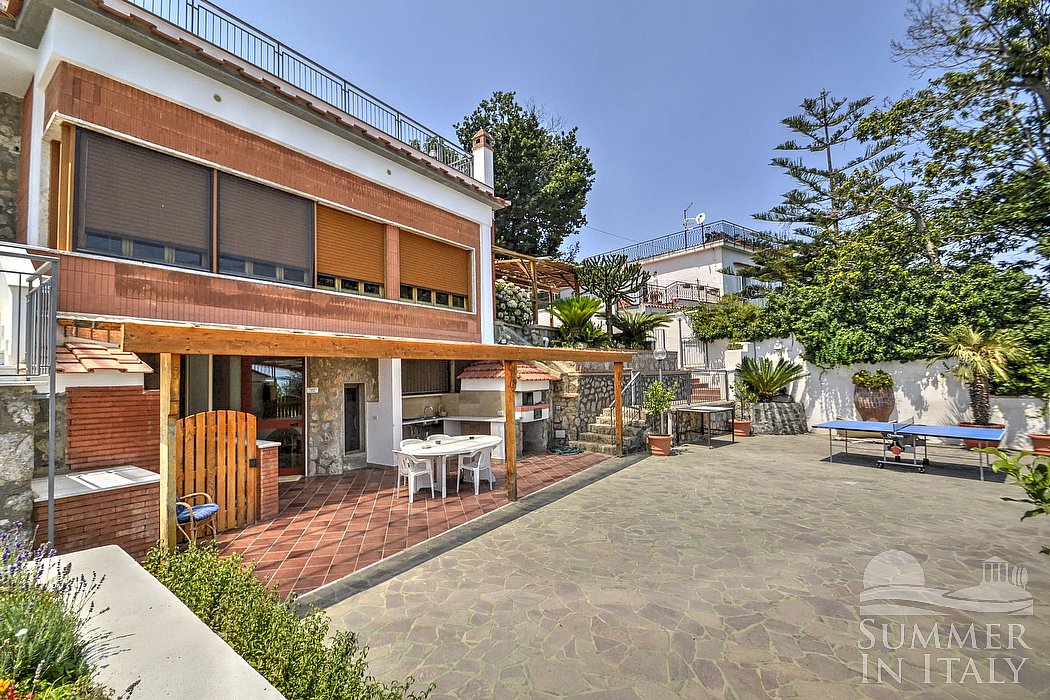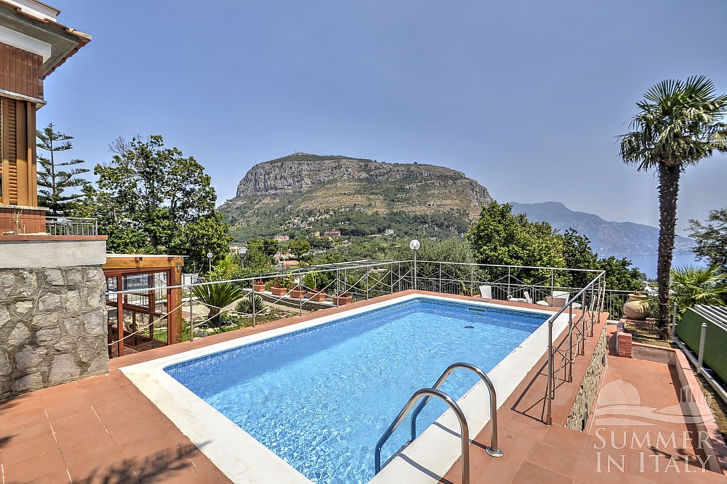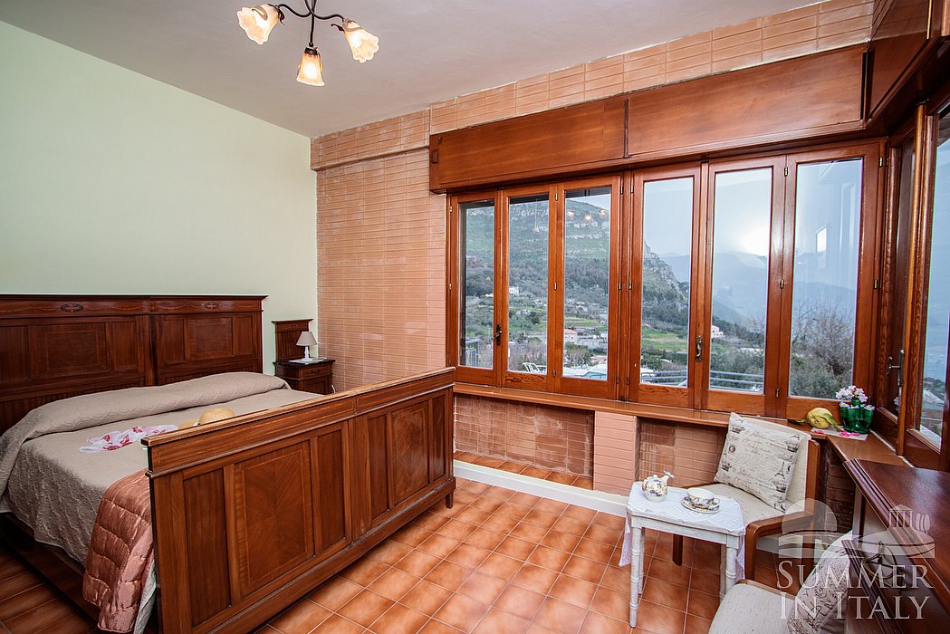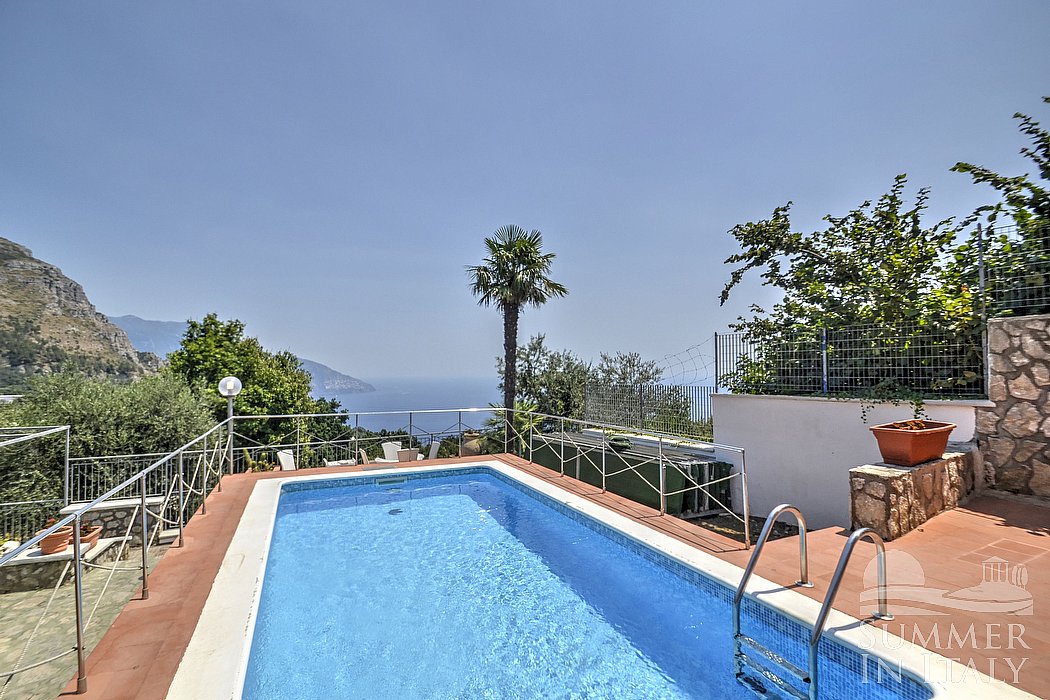 Villa Paola is a bright and sunny two-story villa which faces the sun and the sea. It sleeps 12 people. From Villa Paola you will enjoy a marvelous view of the sea and of the coast of Amalfi. Villa Paola is 220 square meters (2370 square feet). It features a private swimming pool, a panoramic private terrace with a view of the sea and of the coastline, two private patios, air conditioning (please read description below to check in which rooms the units are installed), winter heating and WI-FI Internet access.