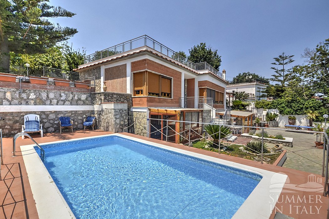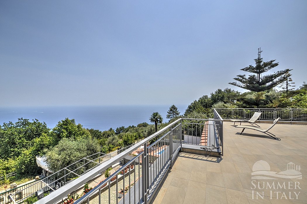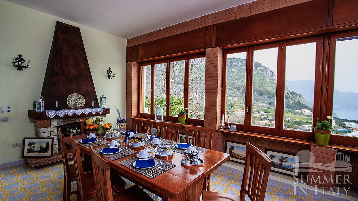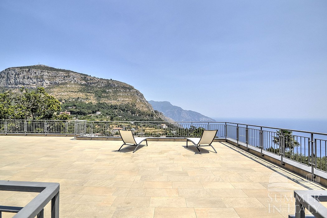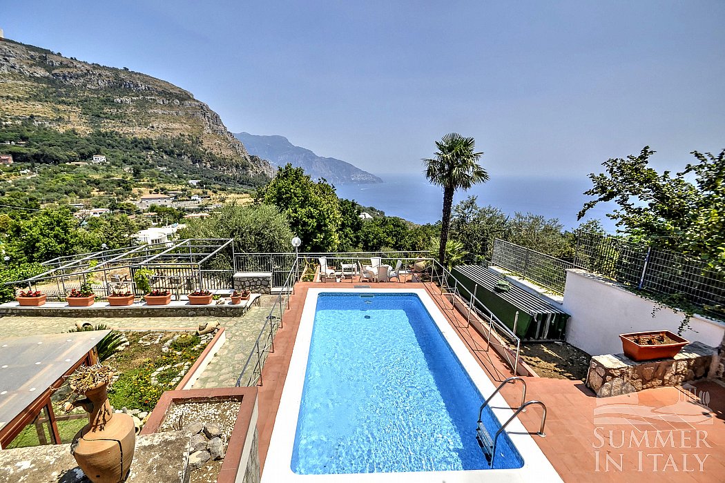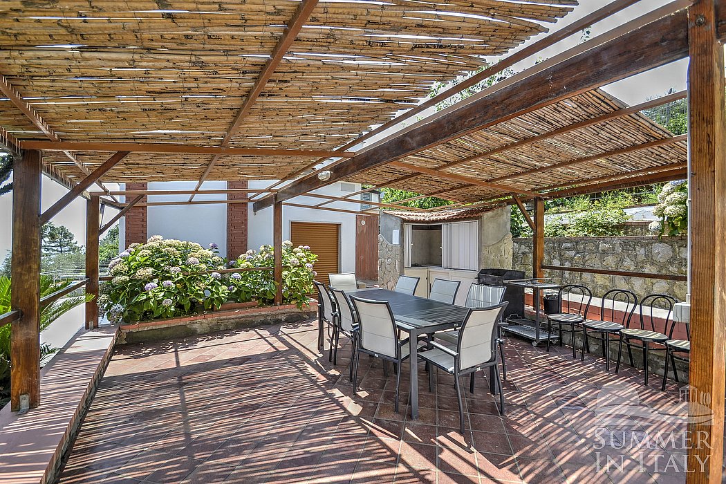 Villa Paola is a bright and sunny two-story villa which faces the sun and the sea. It sleeps 12 people. From Villa Paola you will enjoy a marvelous view of the sea and of the coast of Amalfi. Villa Paola is 220 square meters (2370 square feet). It features a private swimming pool, a panoramic private terrace with a view of the sea and of the coastline, two private patios, air conditioning (please read description below to check in which rooms the units are installed), winter heating and WI-FI Internet access.