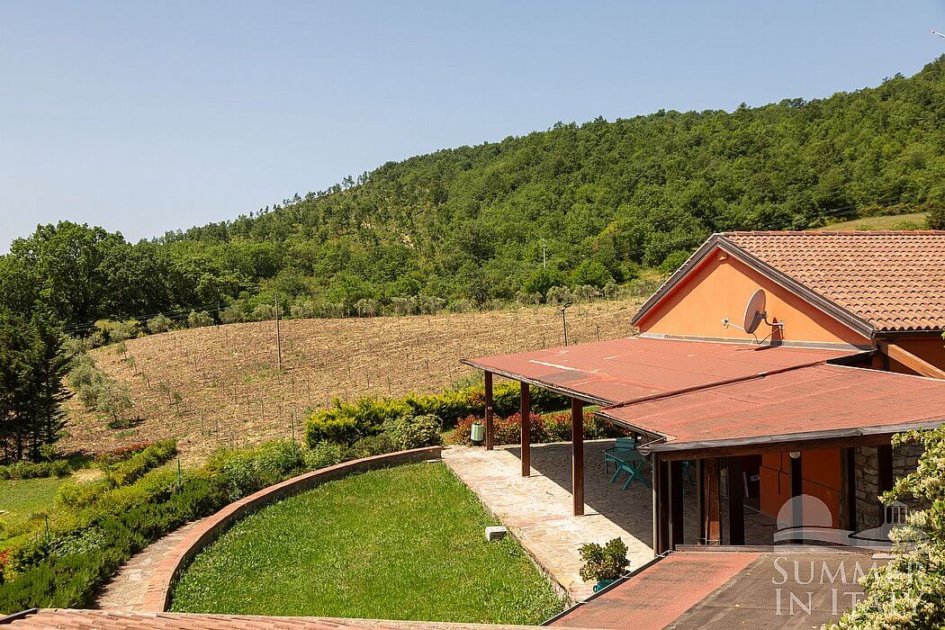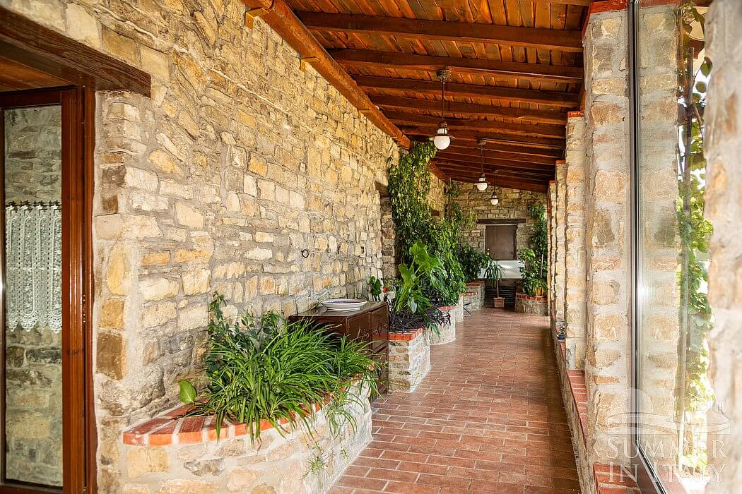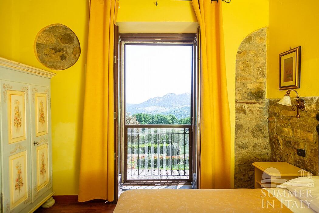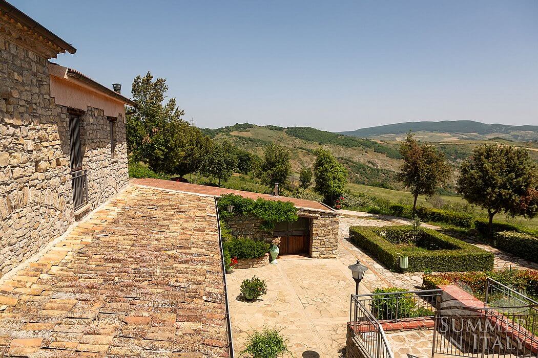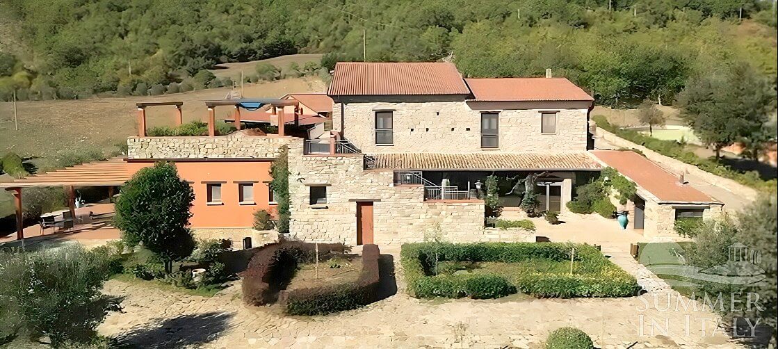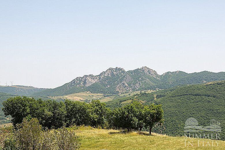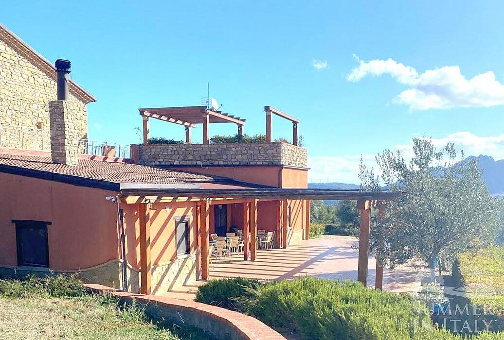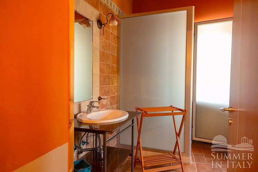 Villa Petruzia is a spacious and welcoming two-story residence surrounded by the greenery and facing the Dolomiti Lucane mountains. It sleeps 18 people. From Villa Petruzia you will enjoy a spellbinding view of the mountains and of the greenery. Villa Petruzia is 450 square meters (4850 square feet). It features a private swimming pool, a private terrace, two private patios, air conditioning (please read description below to check in which rooms the units are installed), winter heating and WI-FI Internet access.