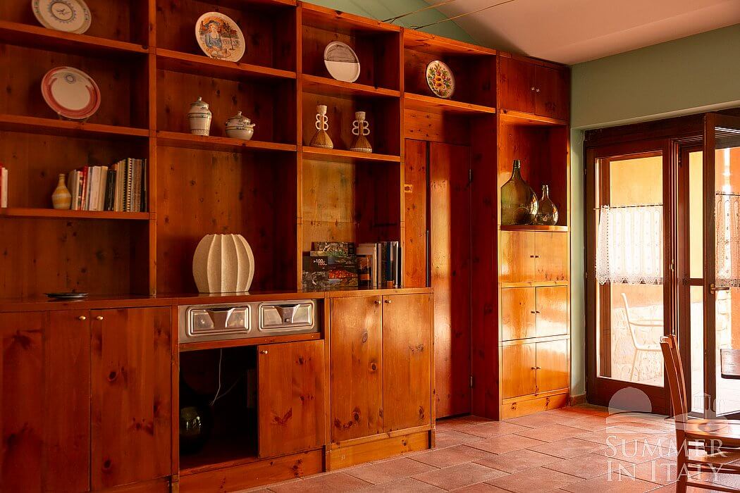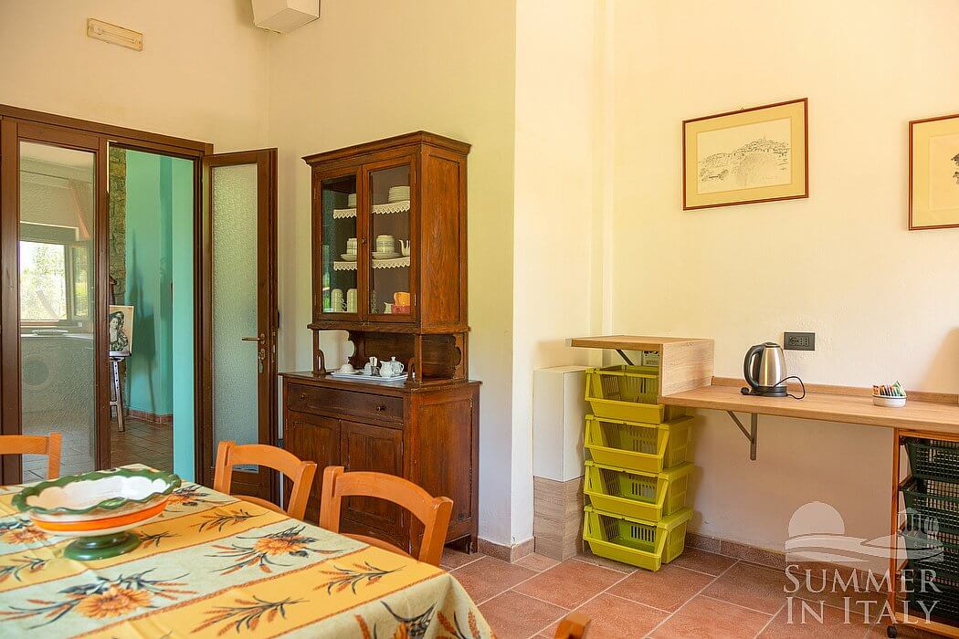 You will be able to enter the second kitchen from the second patio through an external access. It is equipped with a four-burner electric cooker, an electric oven, a refrigerator with freezer, an Italian-style coffee-maker and a kettle. The dining table can accommodate four guests. The kitchen has a window.