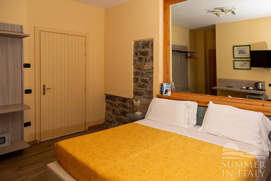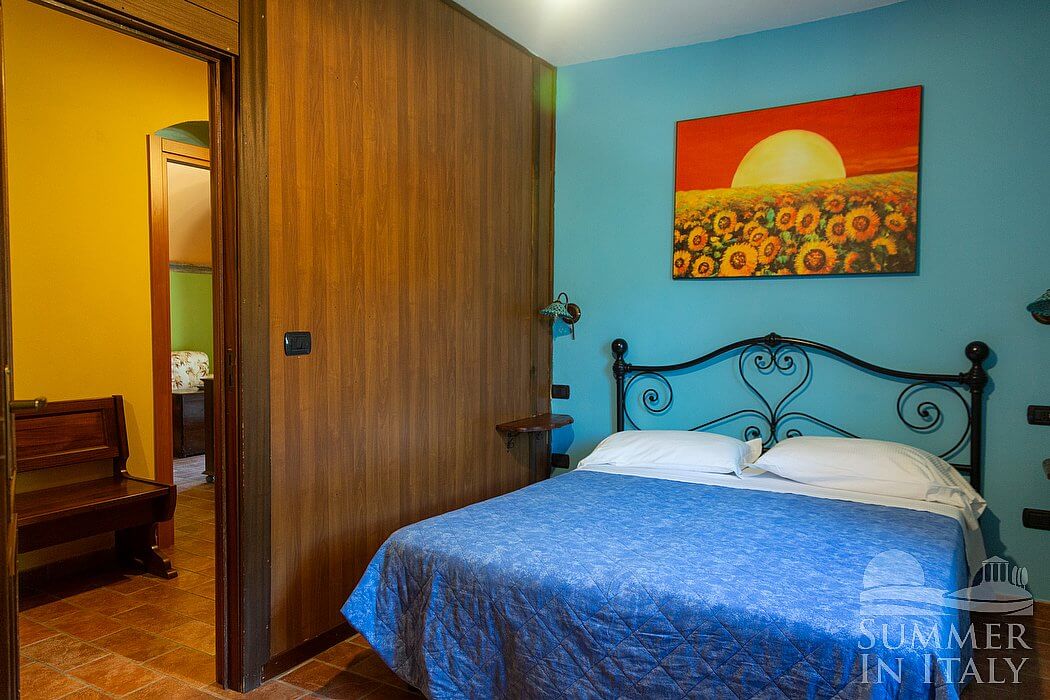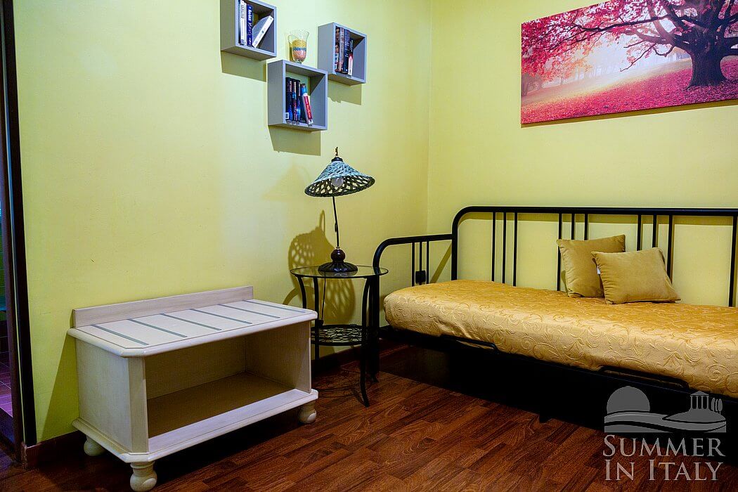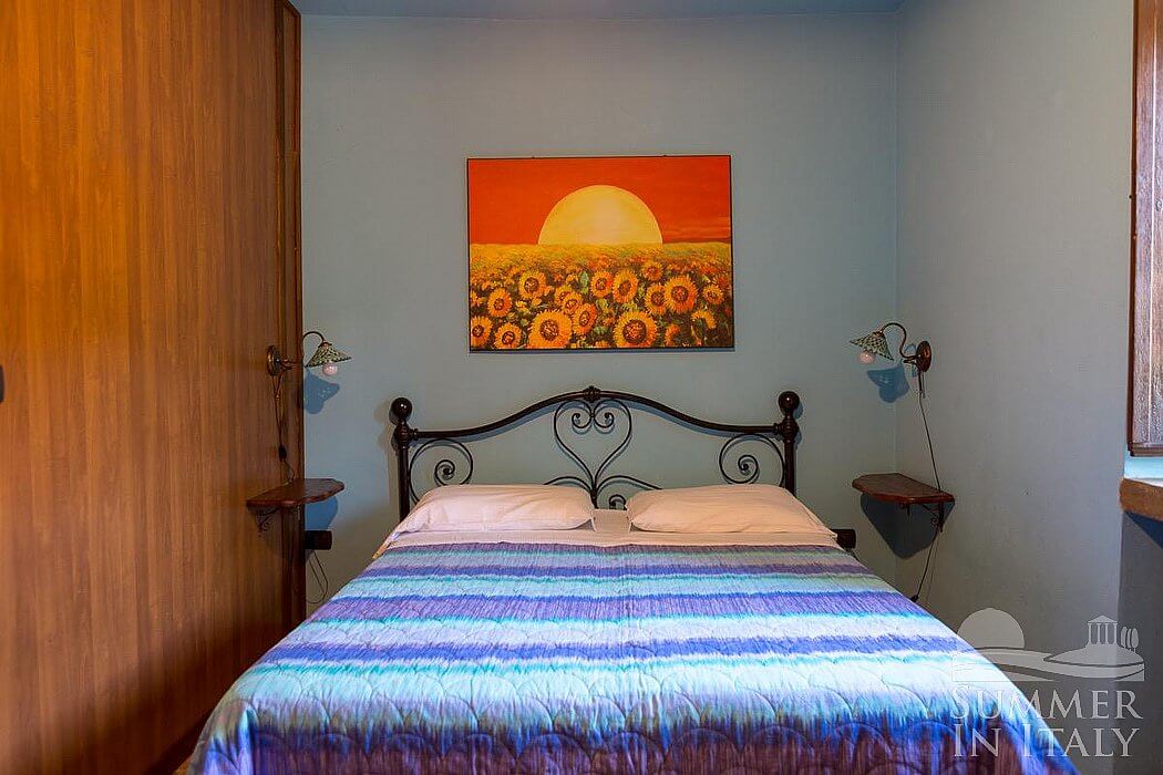 You will be able to enter the sixth bedroom from the kitchen. The bedroom has a matrimonial bed (160 cm/63 inches, wider than a queen-size bed), that can be split into twins if requested (please contact our staff in advance to make arrangements). In this room you will find a satellite television (local channels). The room has a window, and it's equipped with an air conditioning/heating unit.