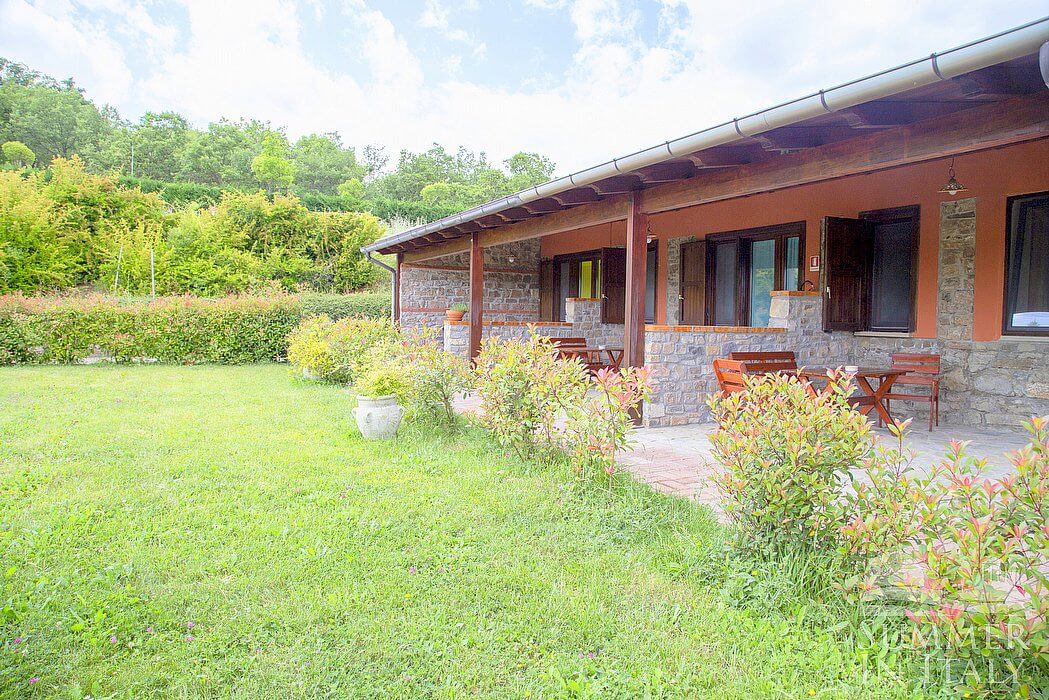 A spacious and welcoming two-story residence surrounded by the greenery and facing the Dolomiti Lucane mountains