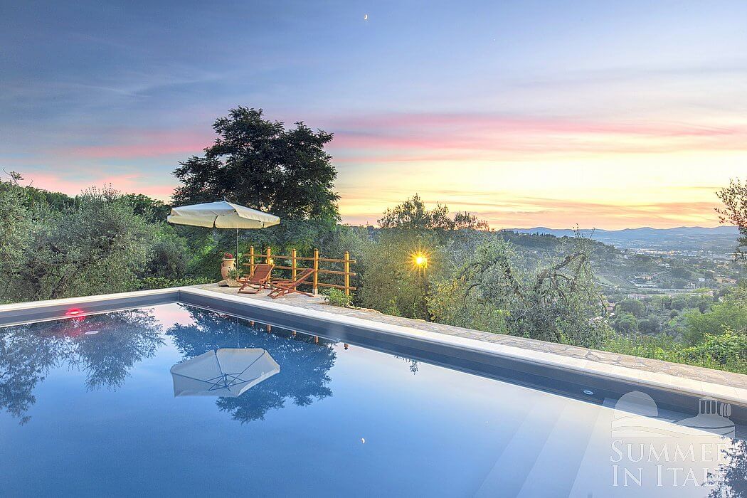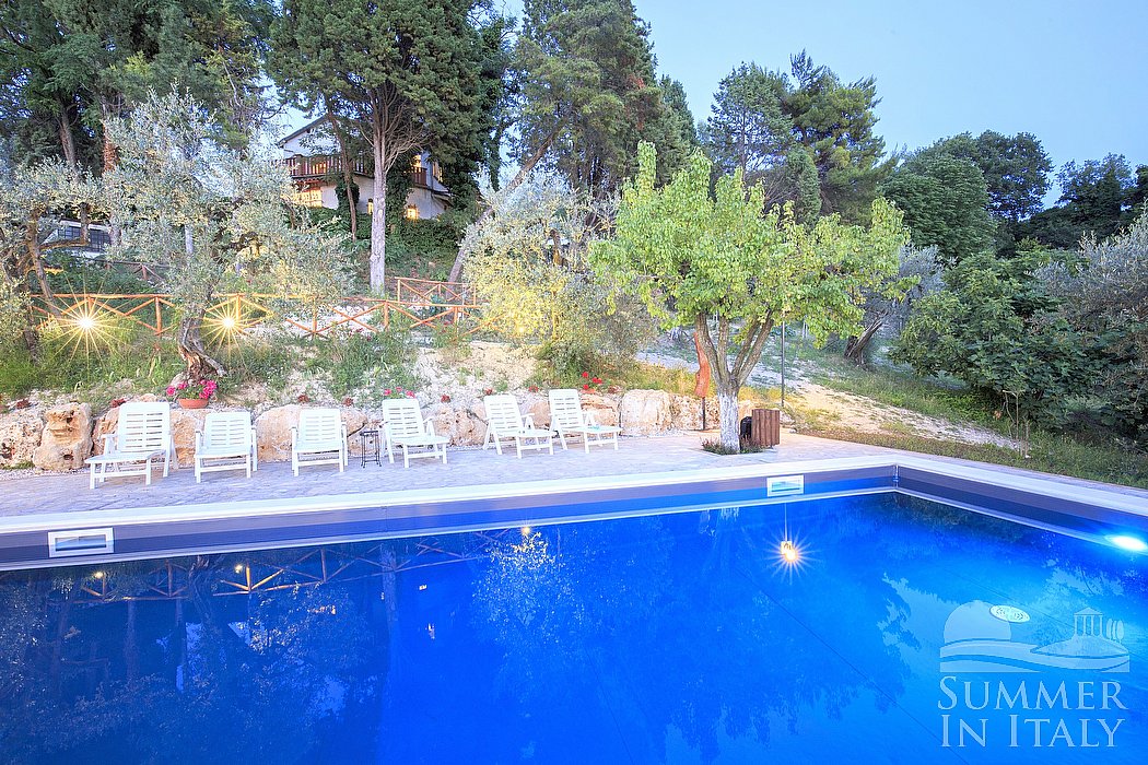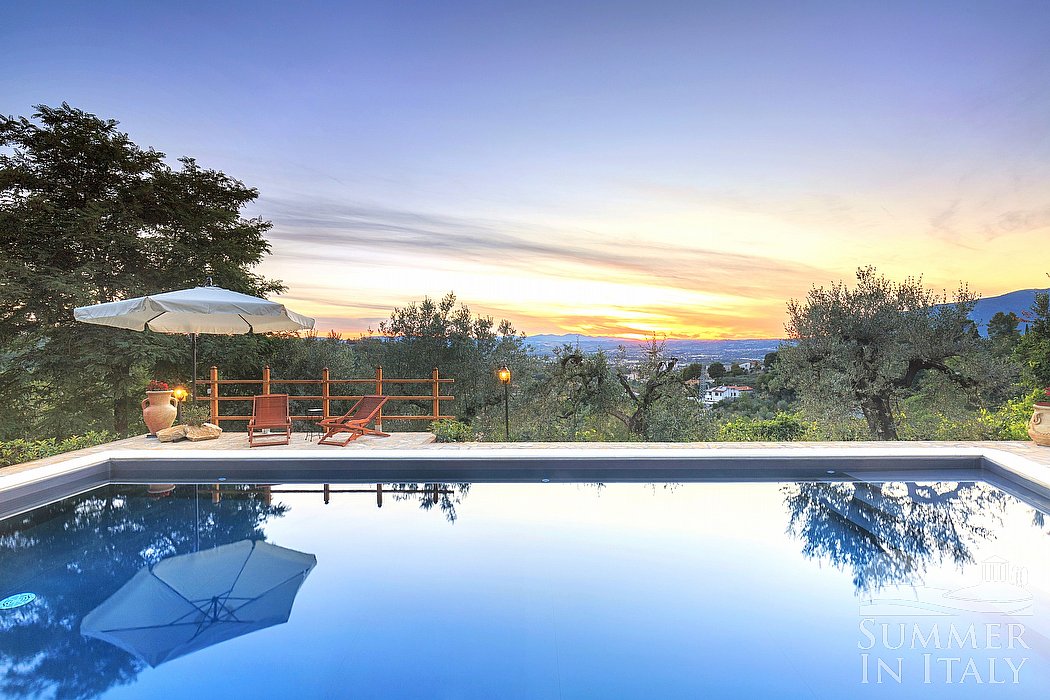 Villa Poesia is an elegant and welcoming two-story villa situated in a quiet location, surrounded by a wonderful garden. It sleeps eight people. From Villa Poesia you will enjoy a charming view of the greenery and of the hills. Villa Poesia is 160 square meters (1720 square feet). It features a private swimming pool, panoramic private terraces, a private patio, a private garden, winter heating and WI-FI Internet access.