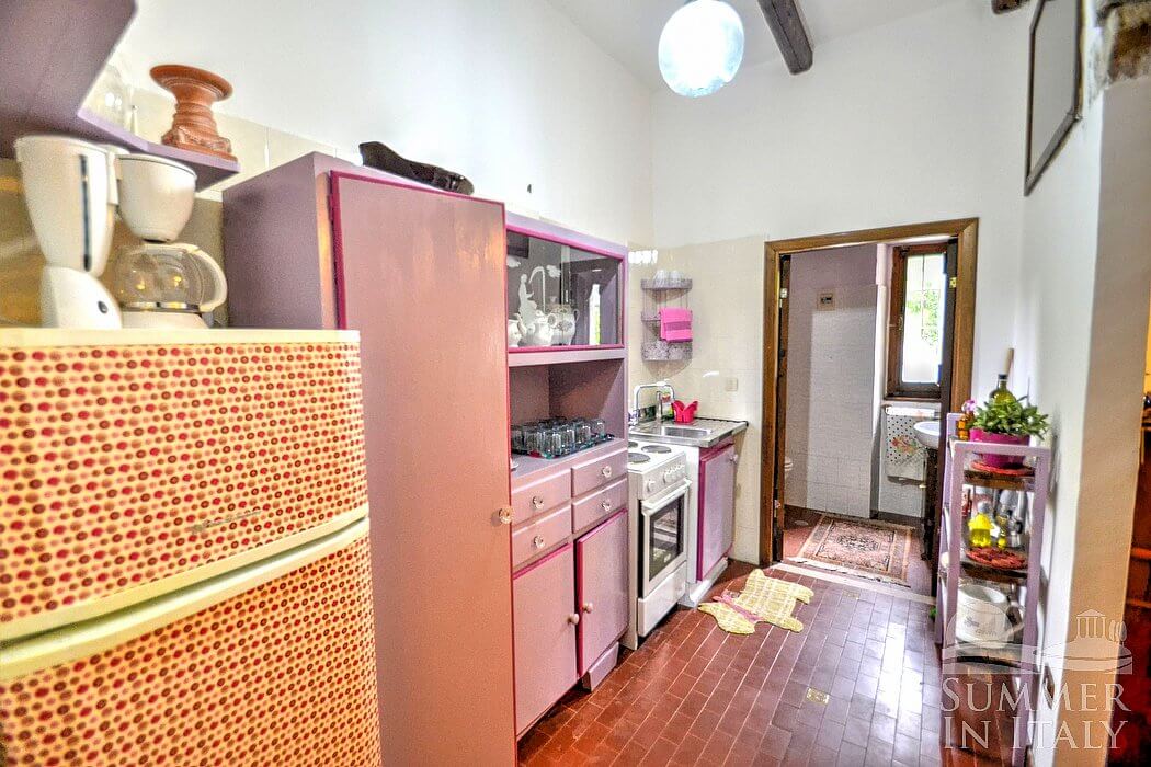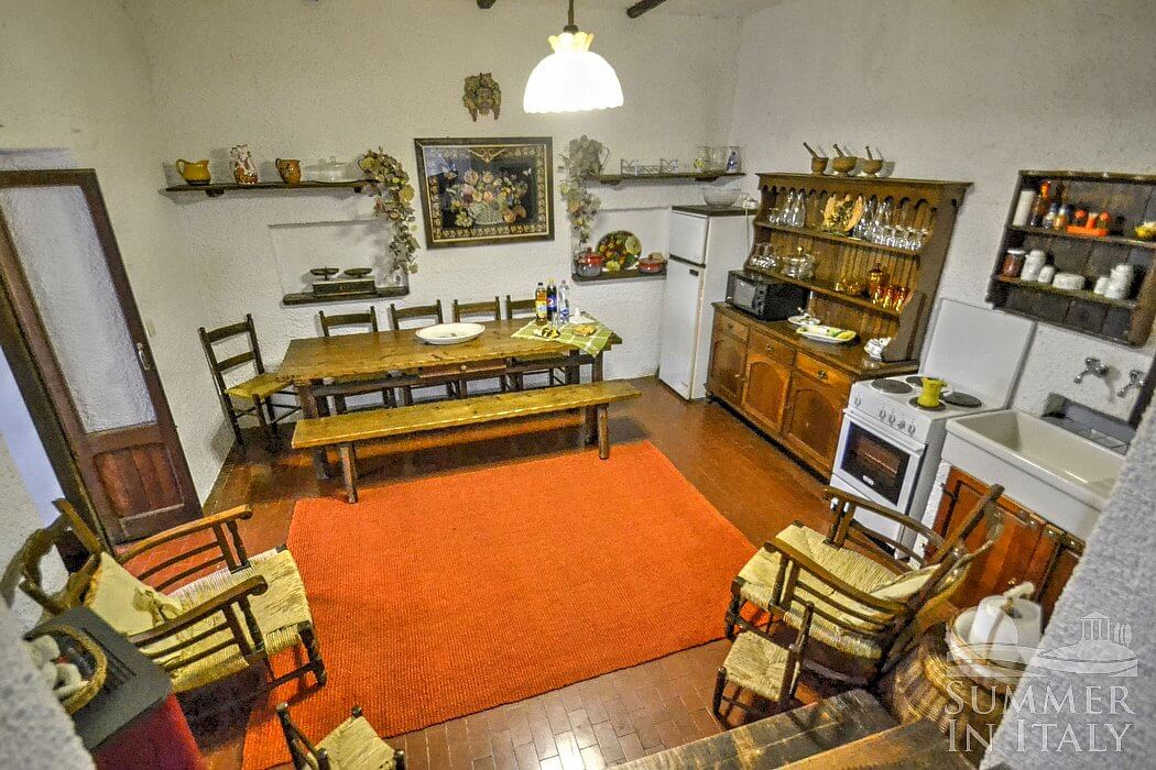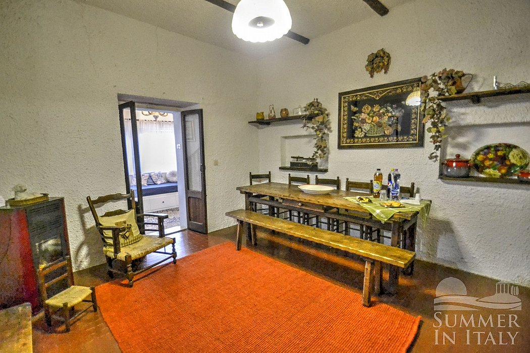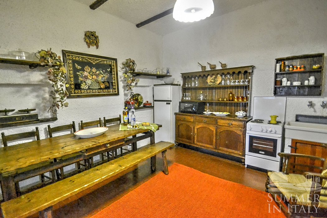 The swimming pool is 6 meters (20 feet) large by 12 meters (39 feet) long. It has a whirlpool corner and is filled with sea water. The swimming pool area is equipped with tables, chairs, a sun umbrella, sun loungers and an external shower. From the swimming pool you will enjoy a spellbinding view of the greenery and of the hills. The pool is open from the beginning of May until the end of September.
