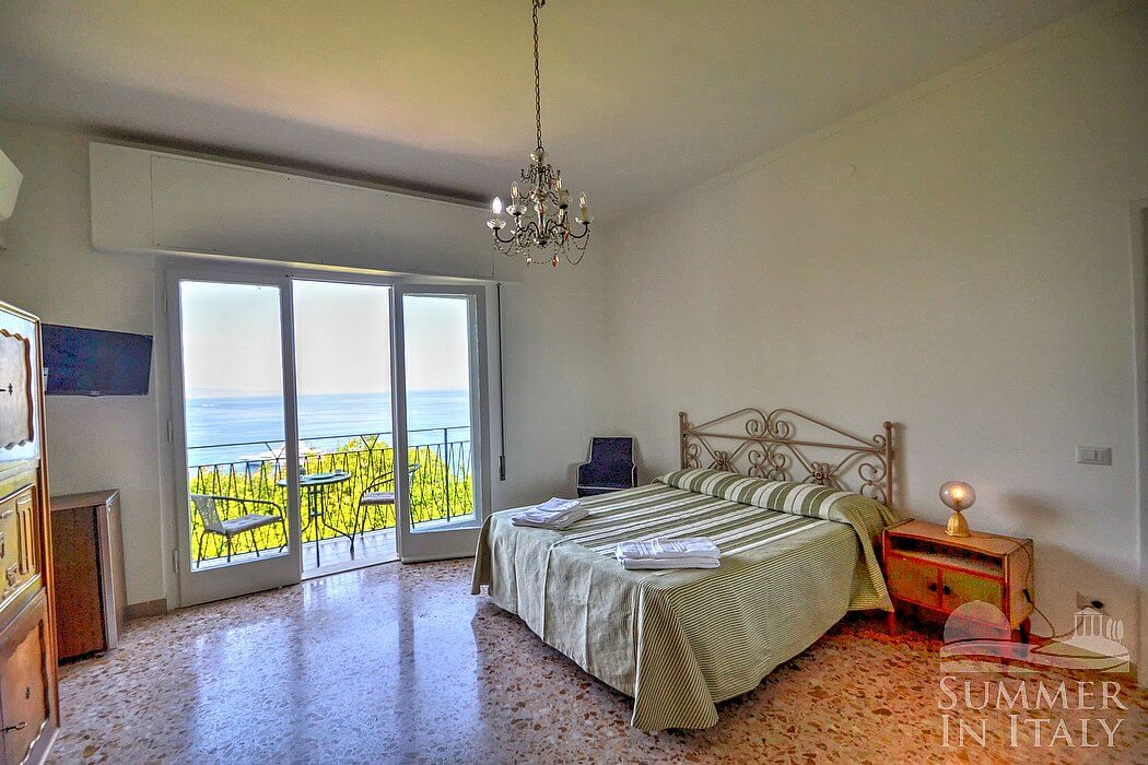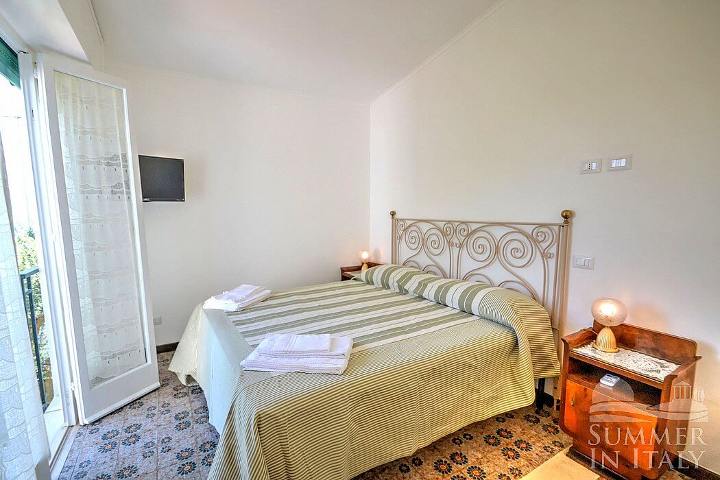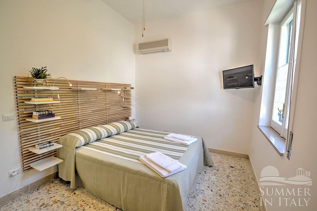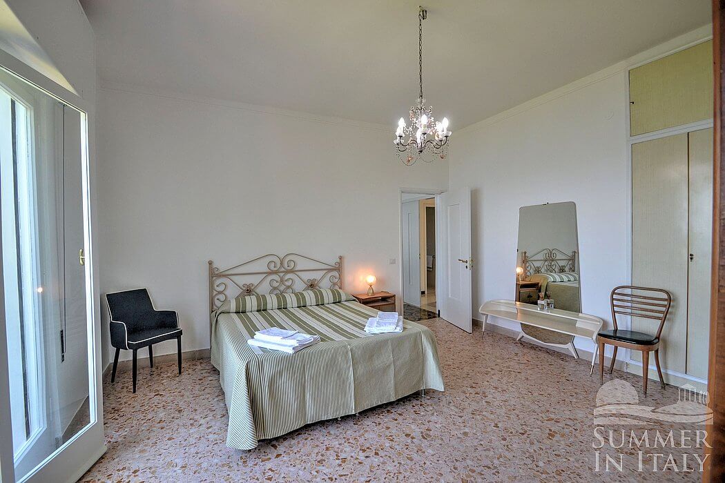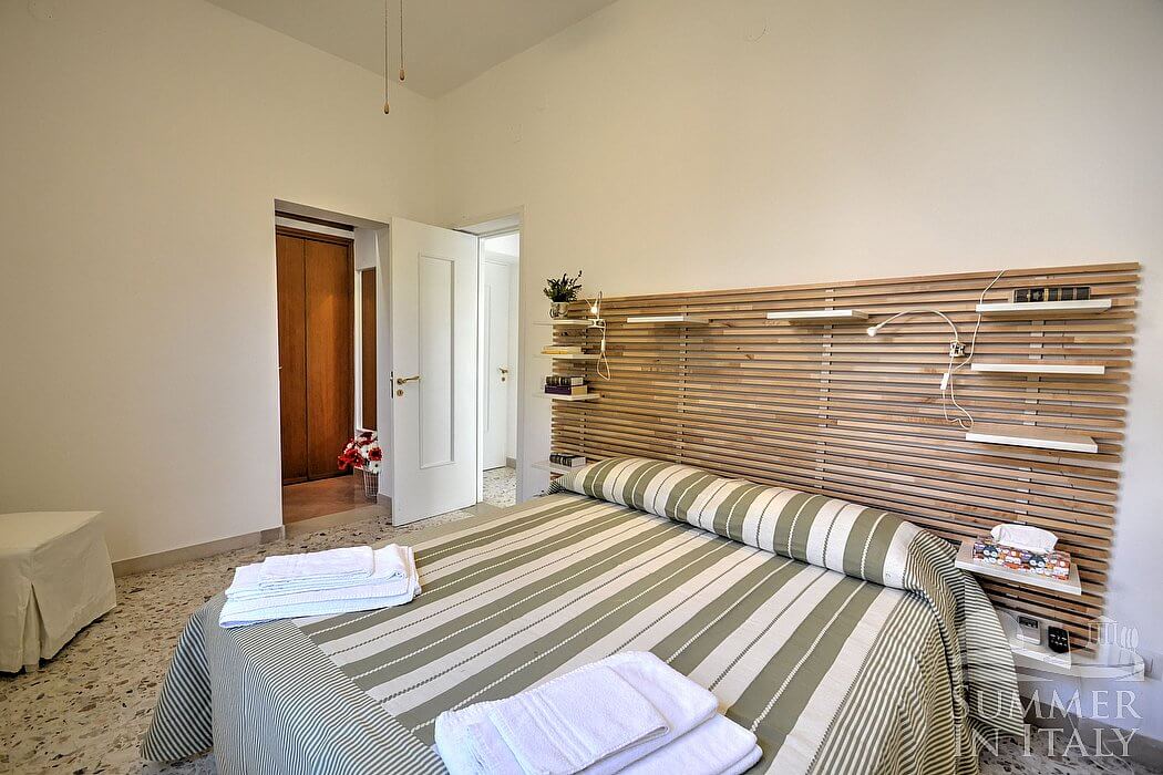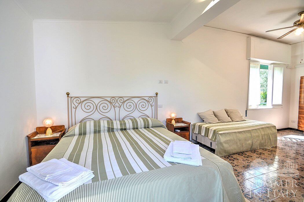 You will be able to enter the third bedroom through an access area. The bedroom has a matrimonial bed (160 cm/62 inches, wider than a queen-size bed). An additional twin bed (80 cm/32 inches) is available (if requested in advance) to make it a triple room. In this room you will find a television (local channels). From the bedroom you will be able to enter a small terrace through a French door. The bedroom is equipped with an air conditioning/heating unit. Here you will also find a ceiling fan.