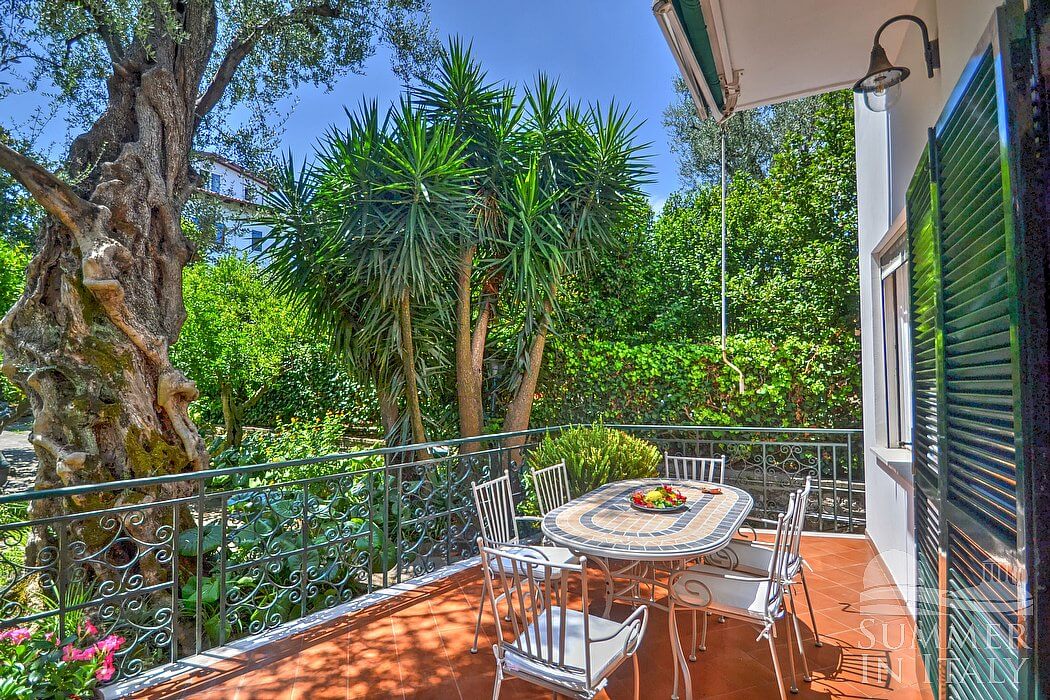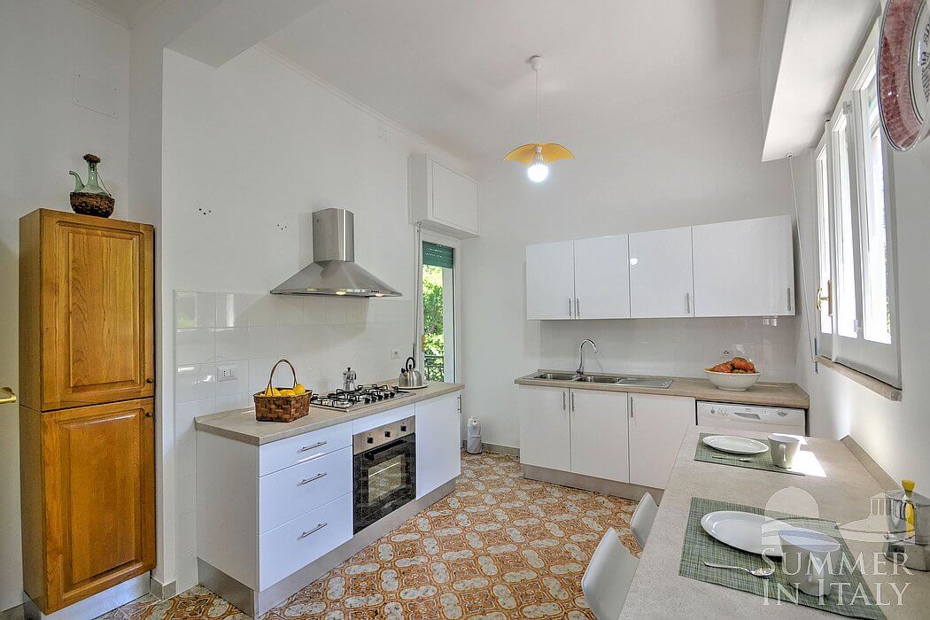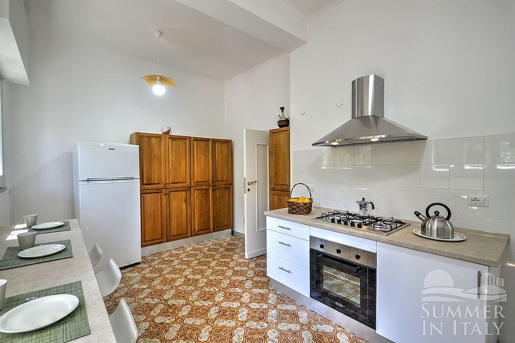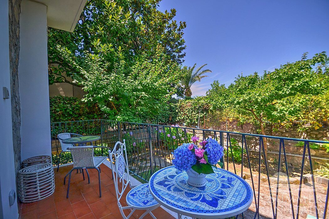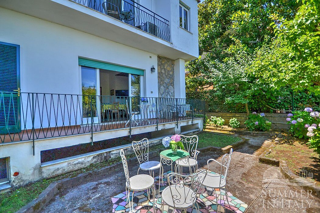 The garden is 1000 square meters (10800 square feet) large. It is partly shaded by century-old olive trees and by a characteristic pergola. It is equipped with a table and chairs. Here you will be able to have fun with a ping pong table. Here you will also find a brickwork barbecue. From the garden you will have a broad view of the greenery.
