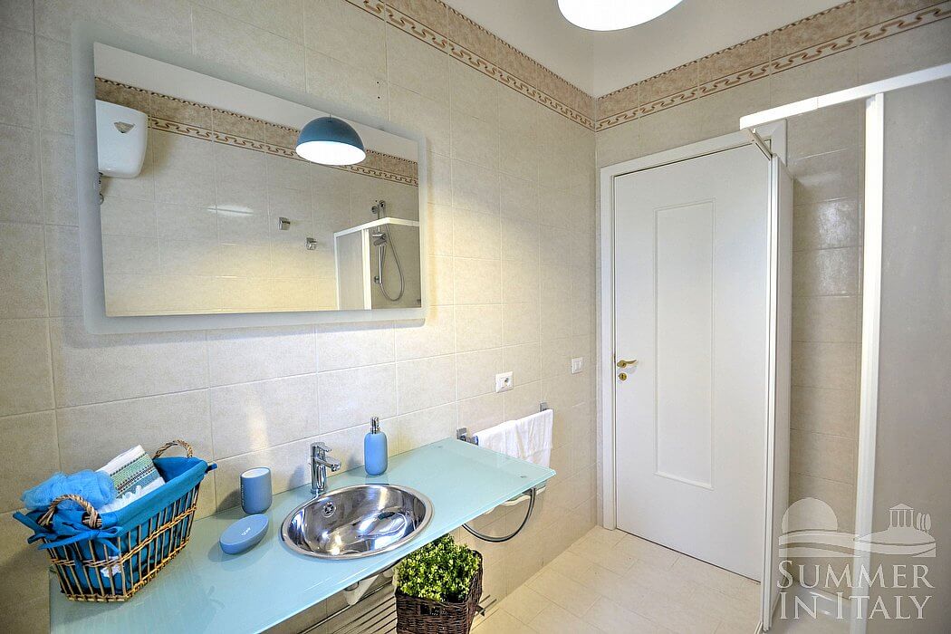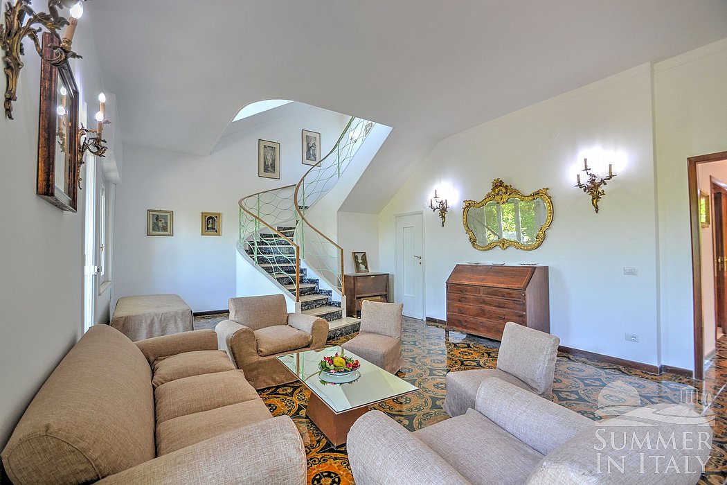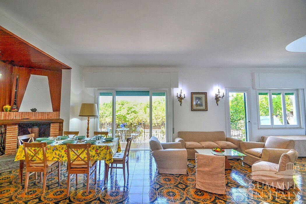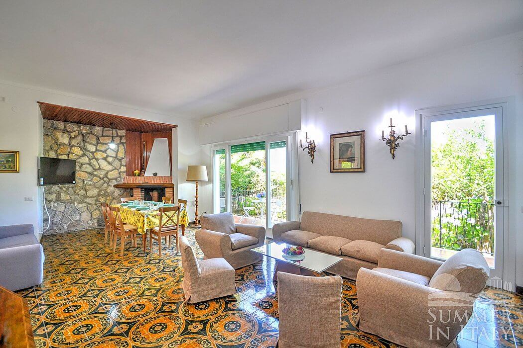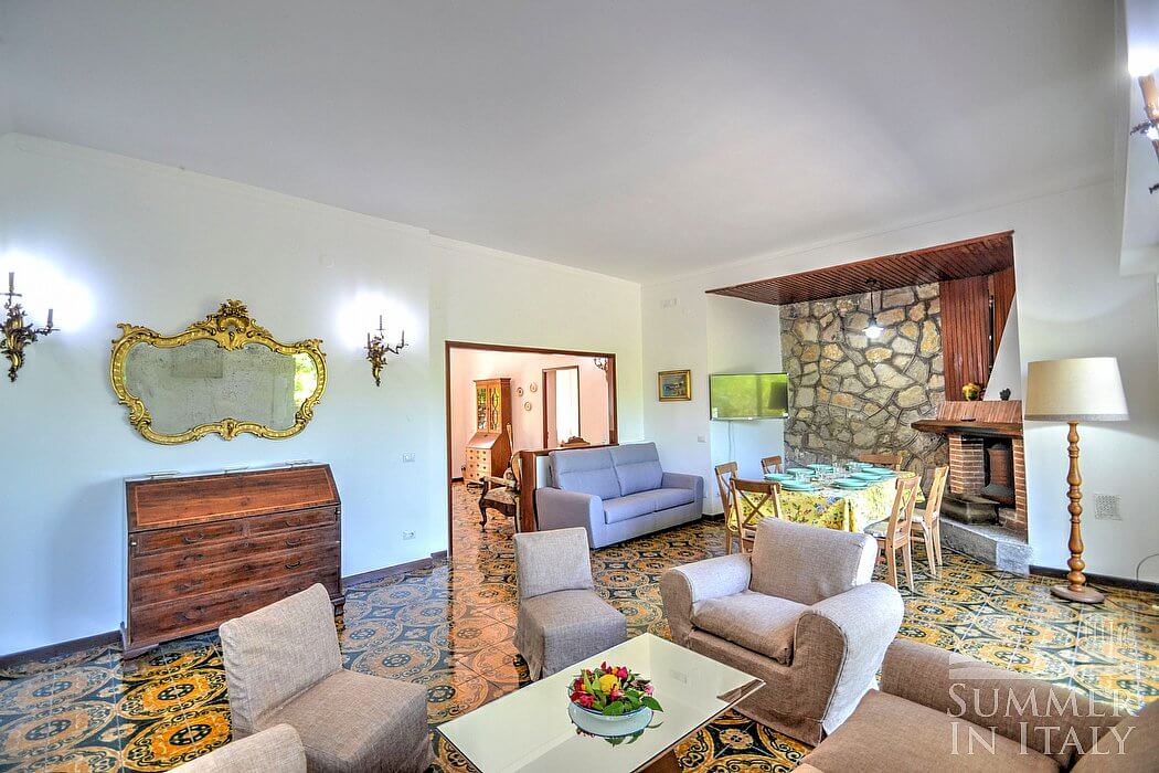 Villa Primosole is a spacious three-story villa situated in a quiet location, a few minutes from the town center. It sleeps 16 people. From Villa Primosole you will enjoy a thrilling view of the sea , of Sorrento and of Mount Vesuvius. Villa Primosole is 250 square meters (2690 square feet). It features private terraces with a view of the sea, a private patio, a private garden, air conditioning (please read description below to check in which rooms the units are installed), winter heating and WI-FI Internet access.