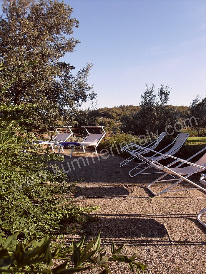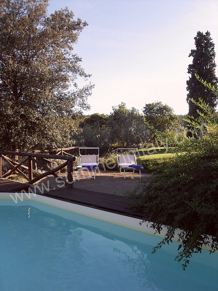 The above-ground swimming pool is 6 meters (20 feet) large by 4 meters (13 feet) long, 1.2 meters (4 feet) deep. The area is equipped with tables, chairs, sun umbrellas, deck chairs, sun loungers and an external shower. From the swimming pool you will enjoy an incredible view of the Senesi hills and of the greenery. The pool is open from the beginning of May until mid-October.