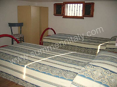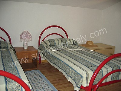 The second bedroom has two twin beds (80 cm/32 inches), that can be pushed together into a matrimonial bed if requested (please contact our staff in advance to make arrangements). From the bedroom you will be able to enter the terrace with a view of the garden and of surrounding countryside through a double-glazed French door. The room has a double-glazed small window.
