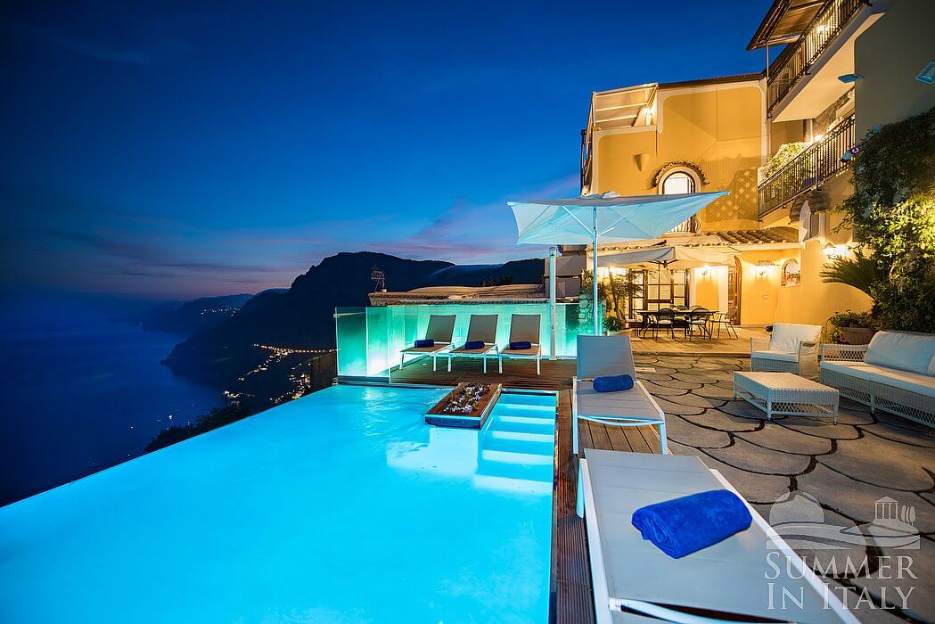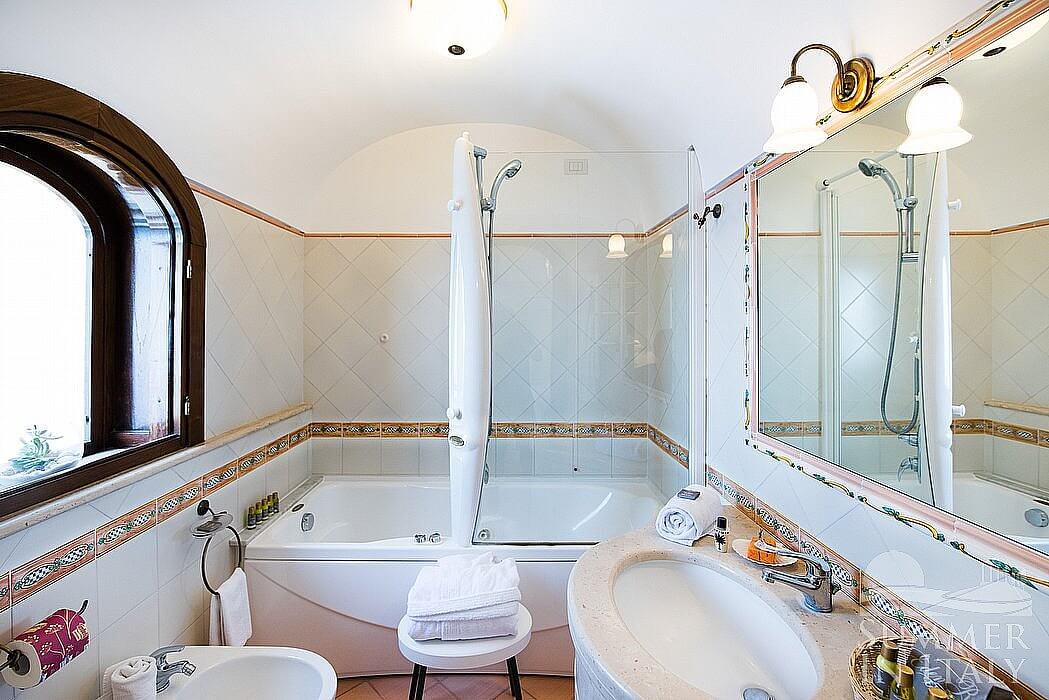 Villa Sultana is a splendid and luminous three-story villa situated on a promontory facing the sea. It sleeps ten people. From Villa Sultana you will enjoy a thrilling view of the sea and of the coast of Amalfi. Villa Sultana is 250 square meters (2690 square feet). It features a private swimming pool, private terraces, a private patio, a private garden, air conditioning (please read description below to check in which rooms the units are installed), winter heating and WI-FI Internet access.