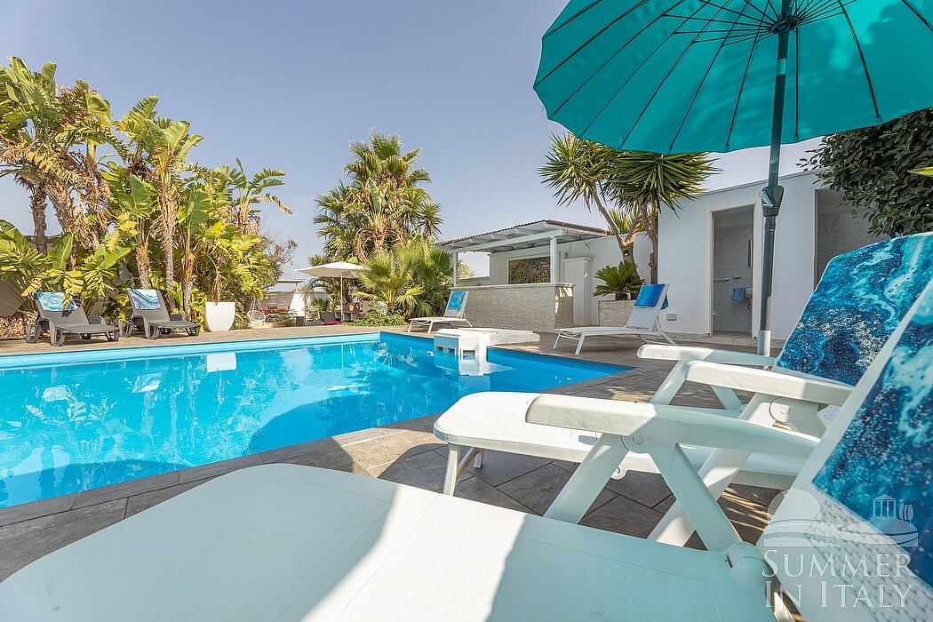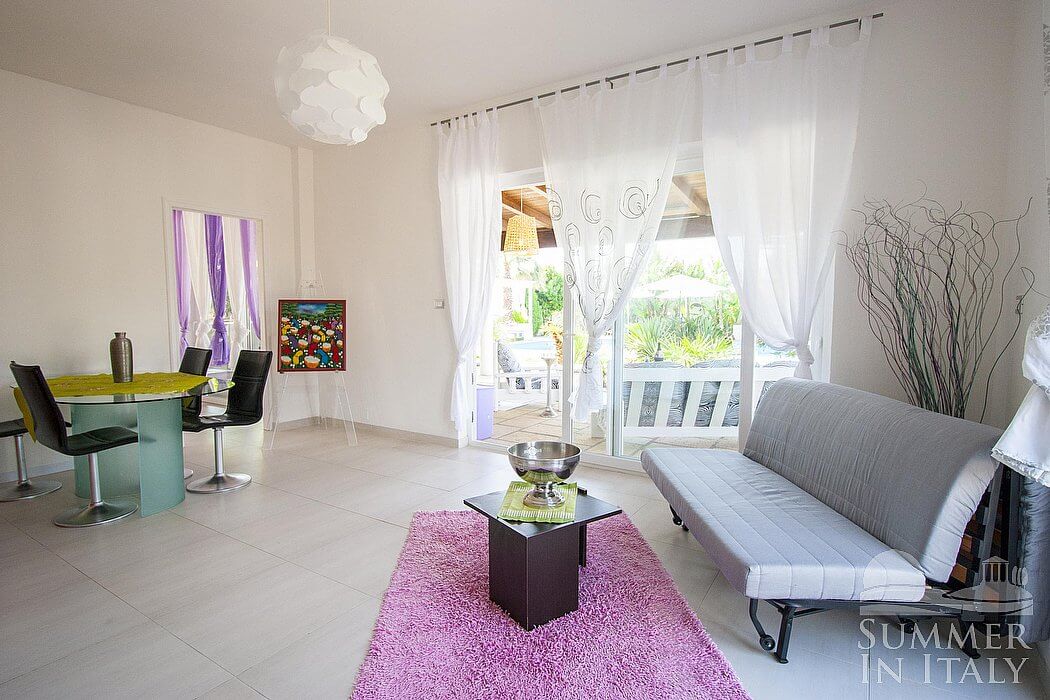 Villa Tentazione is a pleasant and spacious villa situated at a short distance from the beach. It sleeps 12 people. It is approximately 150 square meters (1615 square feet). It features a private swimming pool, a private patio, a private garden, air conditioning (please read description below to check in which rooms the units are installed) and WI-FI Internet access.