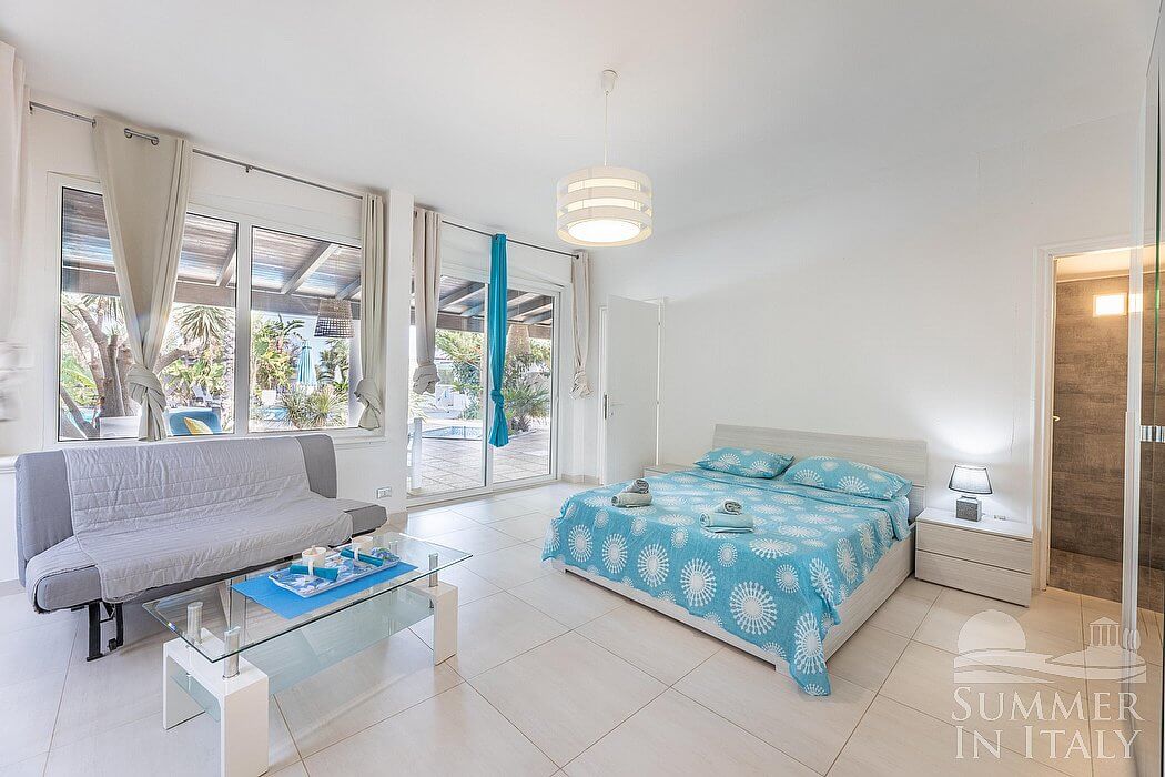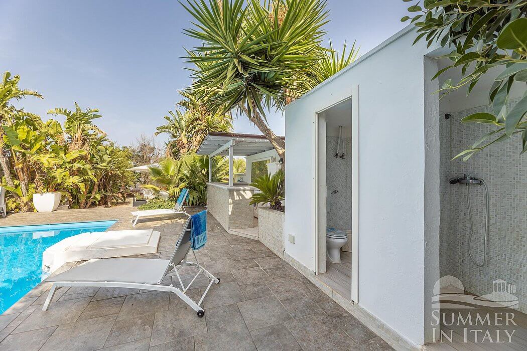 You will be roughly 2 km (1.2 miles) from Marina di Mancaversa. You will find the closest restaurant at 1.5 km (roughly 1 mile), shops at 2.5 km (roughly 1.55 miles) and the closest beach (Punta Pizzo beach) at 300 meters (approximately 990 feet). You will reach Villa Tentazione walking past a main entrance gate and without having to climb any steps.