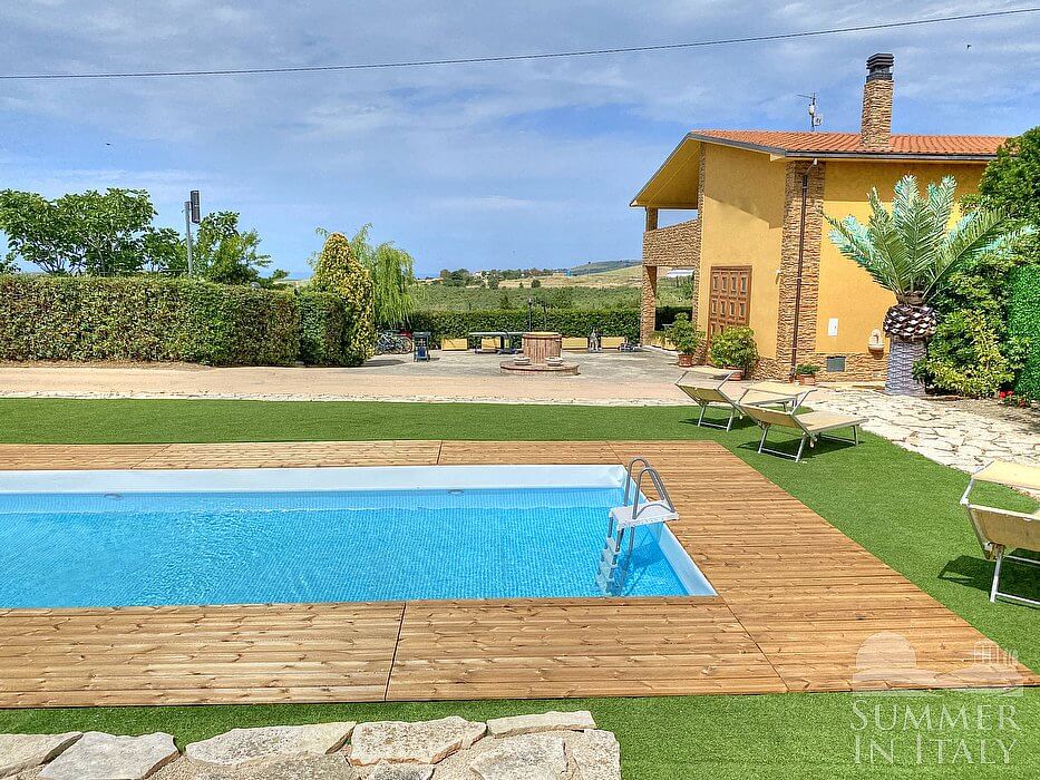 Villa Valente is a welcoming villa situated in the heart of the Molisan countryside. It sleeps ten people. From Villa Valente you will enjoy a charming view of the surrounding countryside and, partially, of the sea at a distance. Villa Valente is 140 square meters (1500 square feet). It features a private swimming pool, a private patio, air conditioning (please read description below to check in which rooms the units are installed), winter heating and WI-FI Internet access.