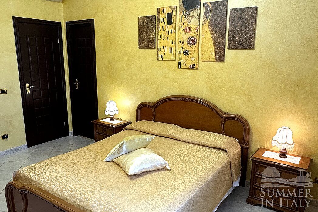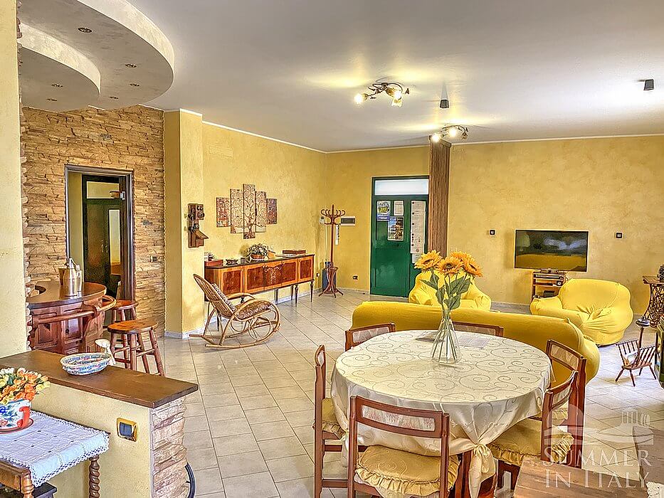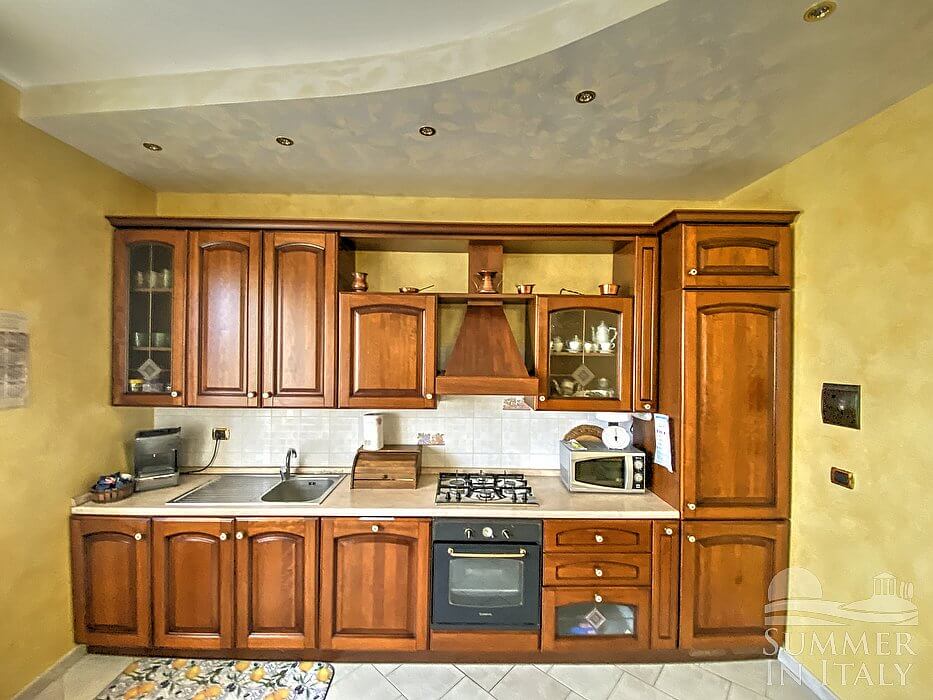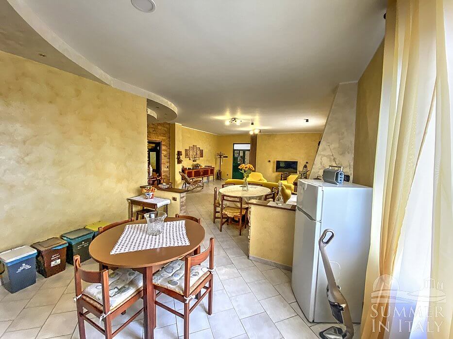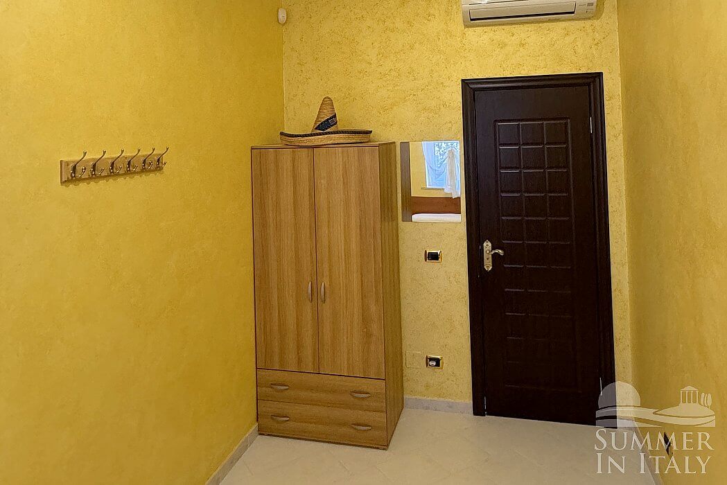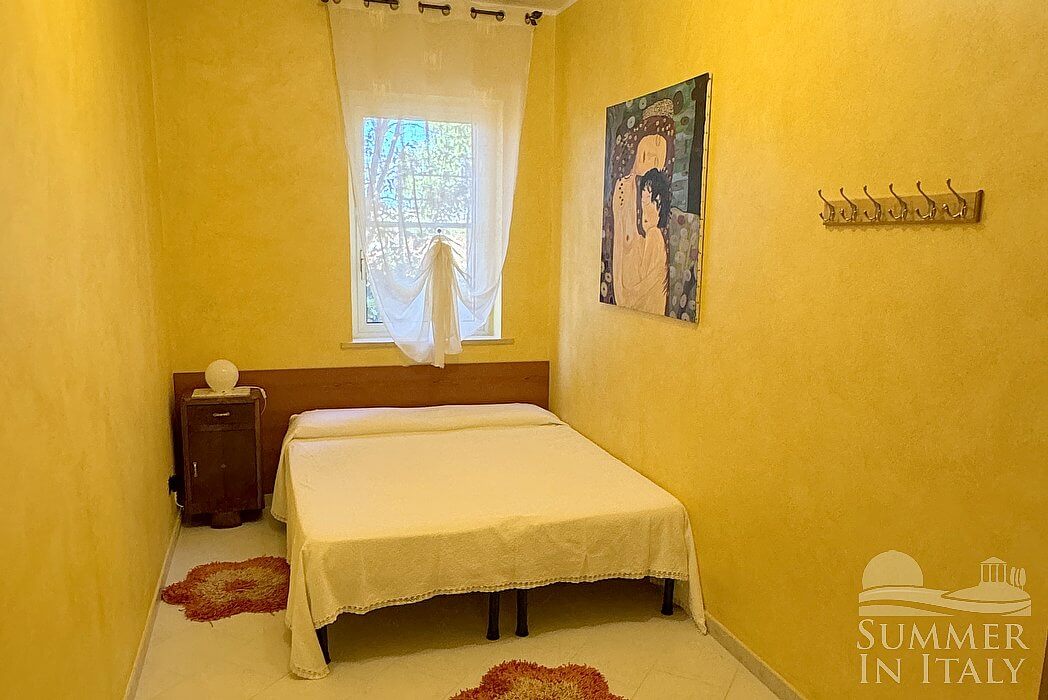 The furnishings of the living room are cozy and comfortable, and include a sofa, two armchairs and a rocking chair. There is a practical fireplace made of bricks, for decorative purposes only. In the living room you will also find a cooking area. The kitchenette is equipped with a four-burner gas cooker, an electric oven, a refrigerator with freezer, a microwave oven, an Italian-style coffee-maker, an American-style coffee-maker and a kettle. The two dining tables can accommodate ten guests. In this room you will find a satellite television (local channels). The room has two windows.