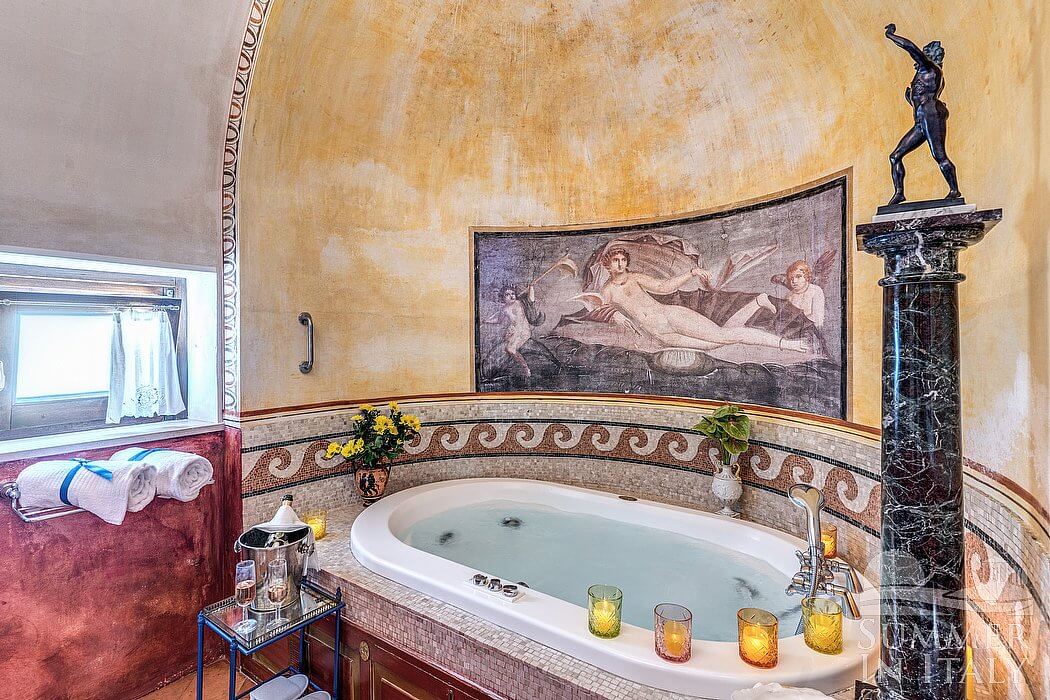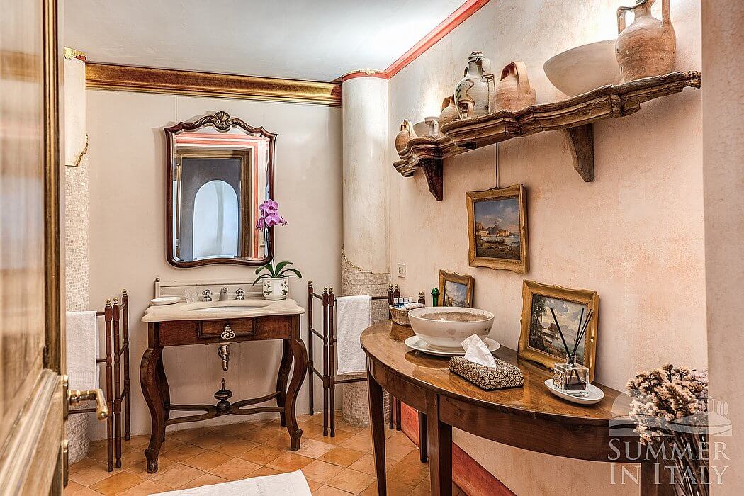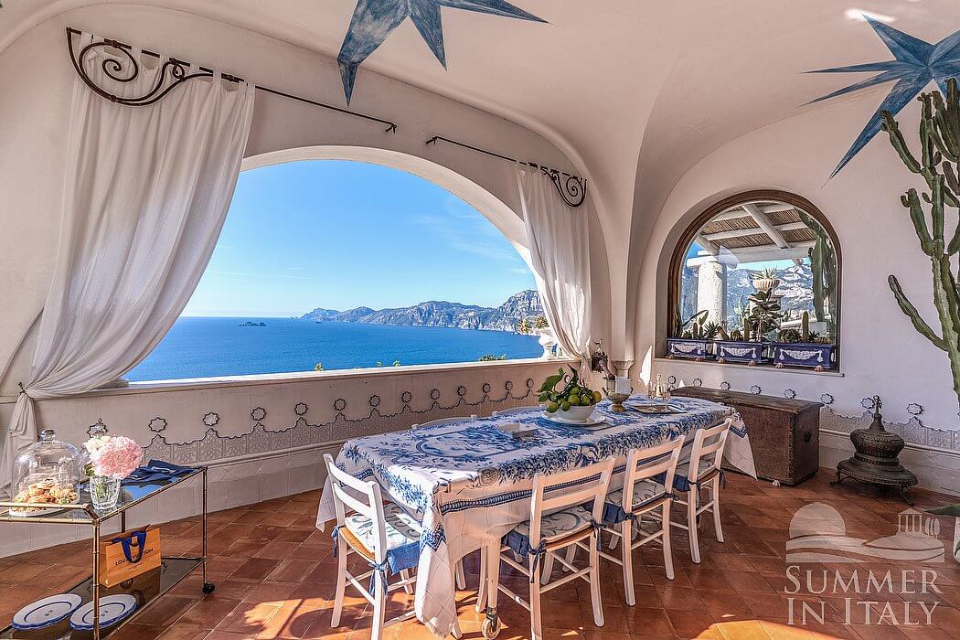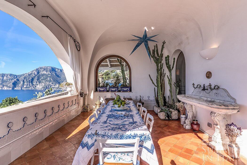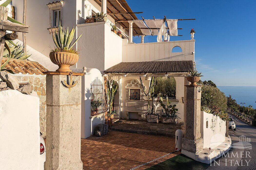 Villa Venusta is a splendid and luminous three-story historical villa located on a hillside, facing the sea. It sleeps eight people. From Villa Venusta you will enjoy a wonderful view of the sea, of Praiano and the coast of Amalfi and of the small Li Galli islands at a distance. Villa Venusta is 350 square meters (3770 square feet). It features a private swimming pool, spacious private terraces with a view of the sea, a private garden, air conditioning (please read description below to check in which rooms the units are installed), winter heating and WI-FI Internet access.