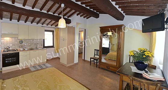 Villa Vezzosa A is a graceful apartment that is part of an ancient country house with strong character, which derives from it actually being restored from an old kiln. It sleeps two people. From Villa Vezzosa A you will have a pleasant view of the surrounding countryside and of the surrounding countryside. Villa Vezzosa A is 30 square meters (320 square feet). It features a shared swimming pool, a shared patio, a shared garden, winter heating and WI-FI Internet access.