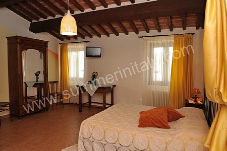 Villa Vezzosa is a large classic old farmhouse in the country surrounded by a garden. There is a sunny swimming pool in the garden. You'll be in the verdant countryside between Tuscany and Umbria, a short distance from the lovely towns of Citerna and Anghiari, which are on the list of "The Most Beautiful Towns in Italy". Villa Vezzosa sits at the edge of the tiny village of Mancino, a cluster of ancient stone homes. Here you won't find tourist hoards, but the real inhabitants of the place, cordial and hospitable, and you'll be able to taste the way of life (and the food and wine!), which are genuine Italian country-style.