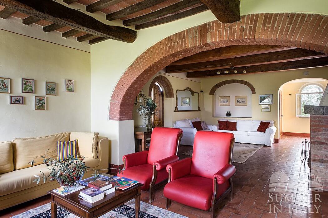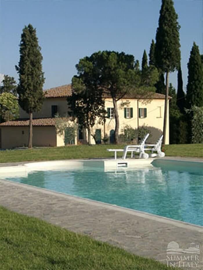 Villa Vinacciolo is a pleasant and spacious two-story villa surrounded by the greenery. It sleeps 22 people. From Villa Vinacciolo you will enjoy an enchanting view of the surrounding countryside and of the hills of Valdichiana. Villa Vinacciolo is 350 square meters (3770 square feet). It features a private swimming pool, a private terrace, a private garden, air conditioning (please read description below to check in which rooms the units are installed), winter heating and WI-FI Internet access.