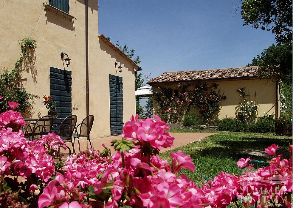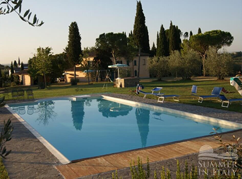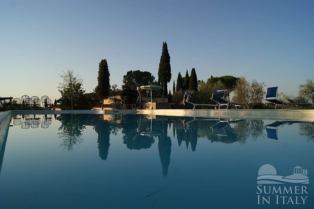 The swimming pool is 7 meters (23 feet) large by 14 meters (46 feet) long. The area is equipped with a table, chairs, sun umbrellas, deck chairs, sun loungers and an external shower. From the swimming pool you will enjoy a broad view of the surrounding countryside. The pool is open from the beginning of May until mid-October.