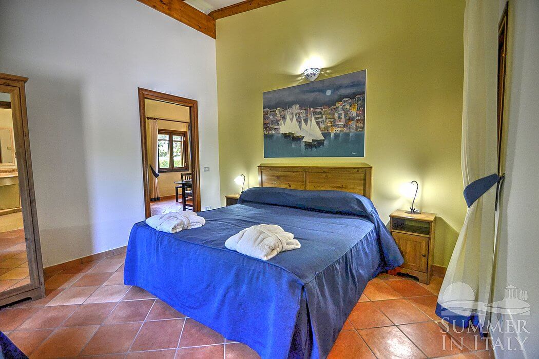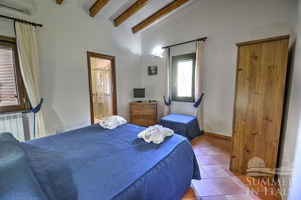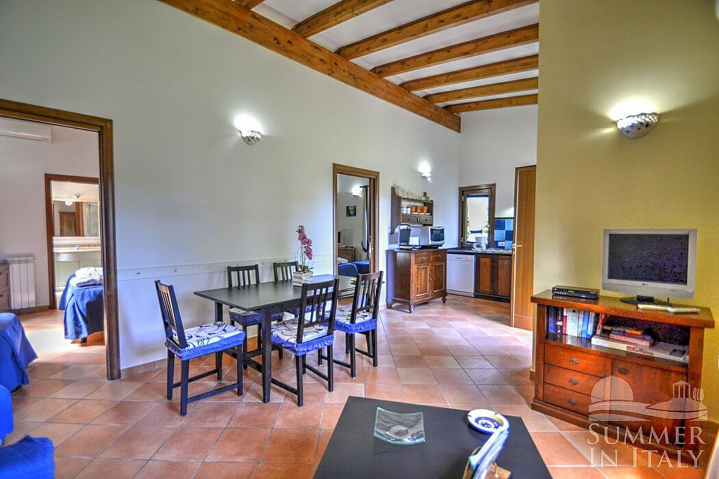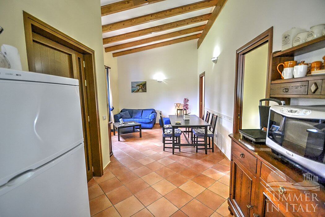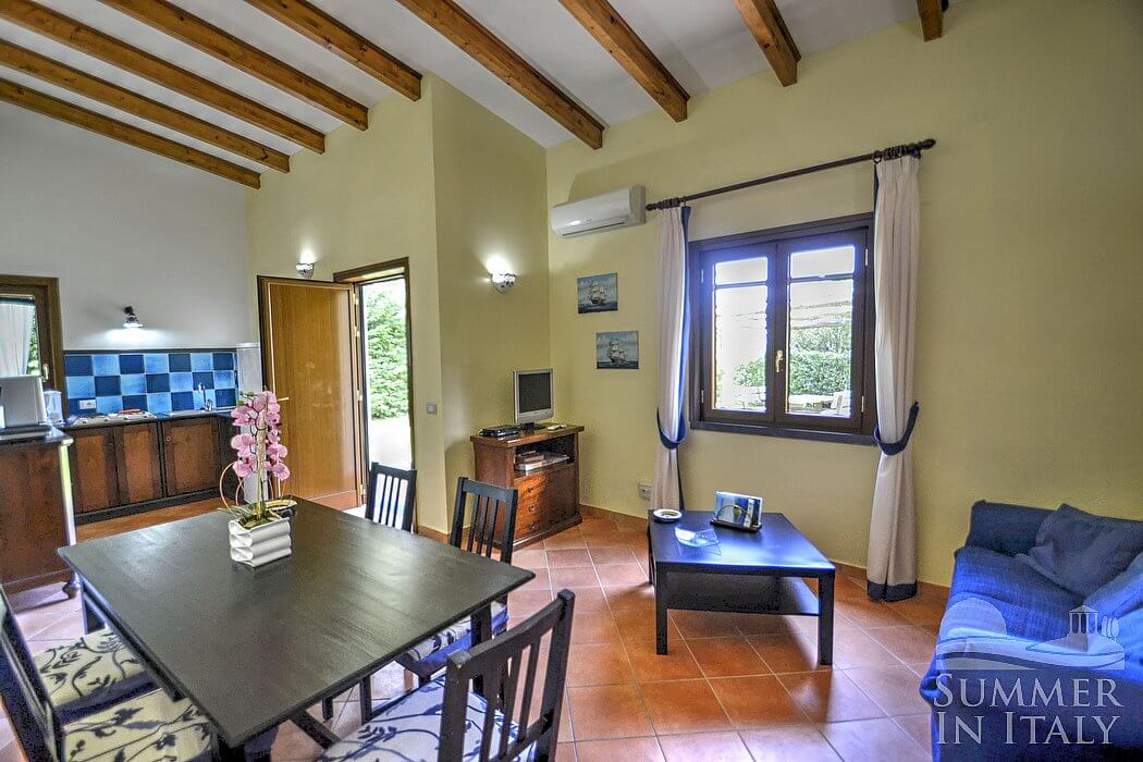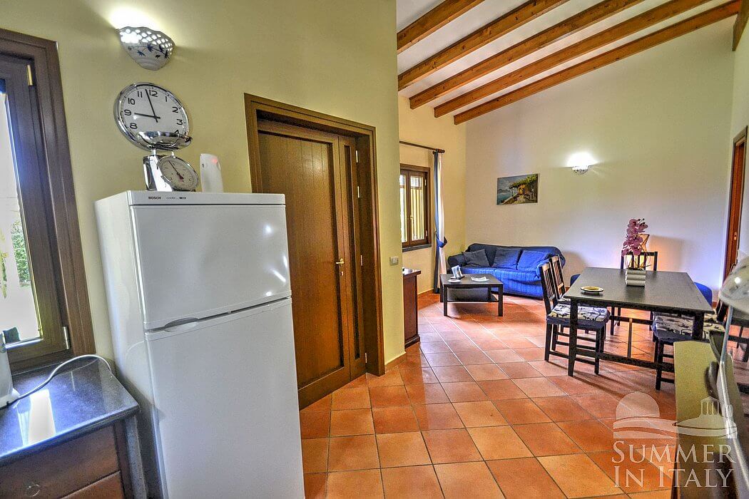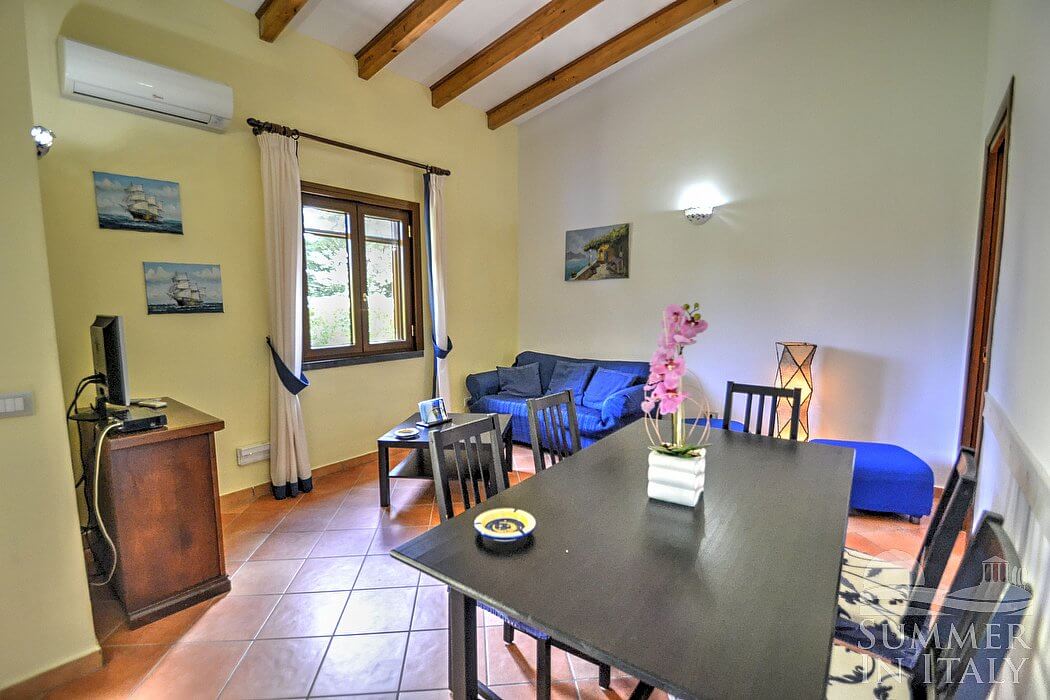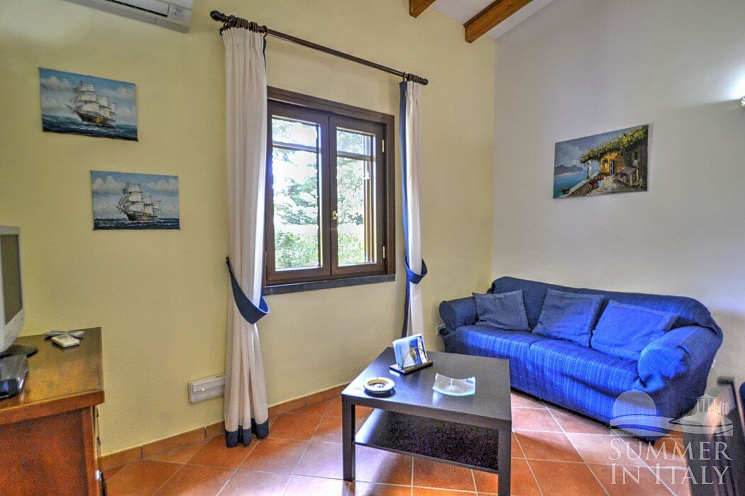 The small complex is located on the side of a greenhill and it consists of three cottages. Each cottage has its own garden. From the cottages you will have direct access, through a short path which crosses the garden, to the large shared pool and green area perfect for your kids games.