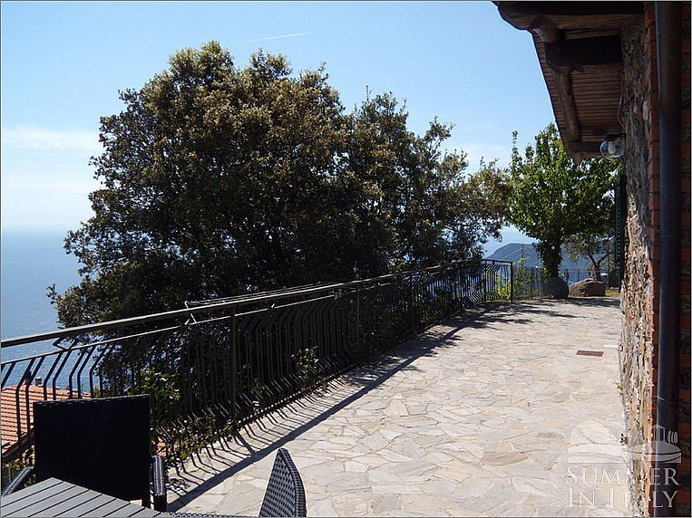 The terrace is 80 square meters (860 square feet) large. It is partly shaded by a wood roof. It is equipped with tables, chairs, two sun loungers and an external shower. Here you will also find a brickwork barbecue. From the terrace you will enjoy a splendid view of the sea and of the villages of Corniglia, Manarola and Monterosso.